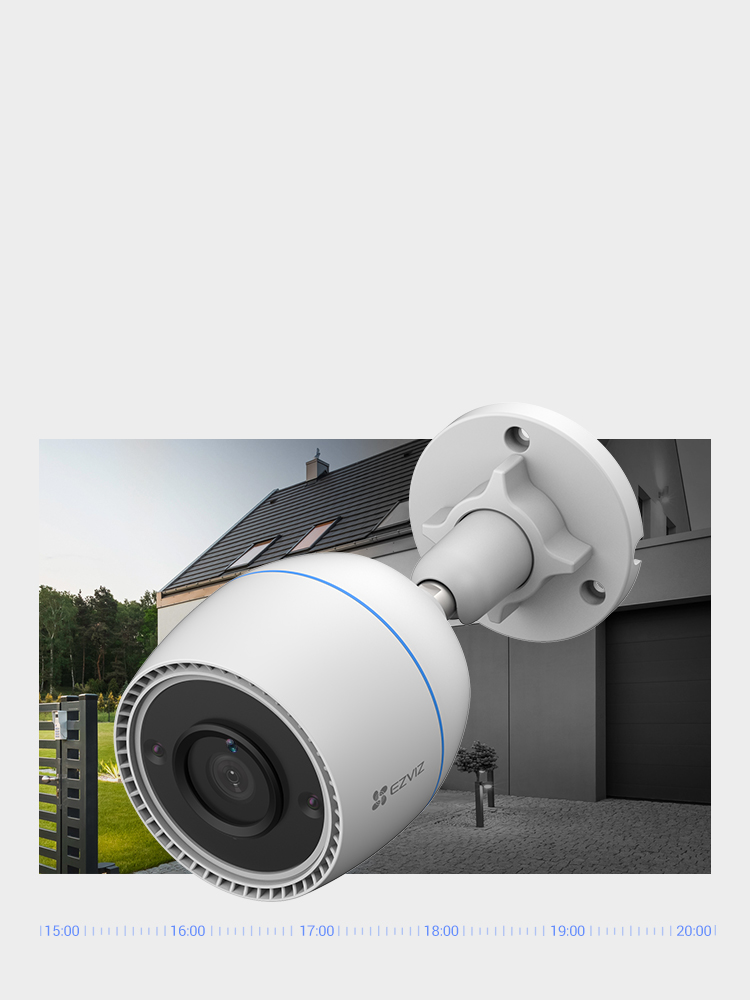 H3c Color tích hợp tính năng chủ động phòng vệ được ưa chuộng của EZVIZ để cung cấp thêm một lớp bảo vệ. Khi phát hiện kẻ xâm nhập, camera sẽ nhấp nháy hai đèn splotlight sáng chói³ để răn đe tại chỗ.