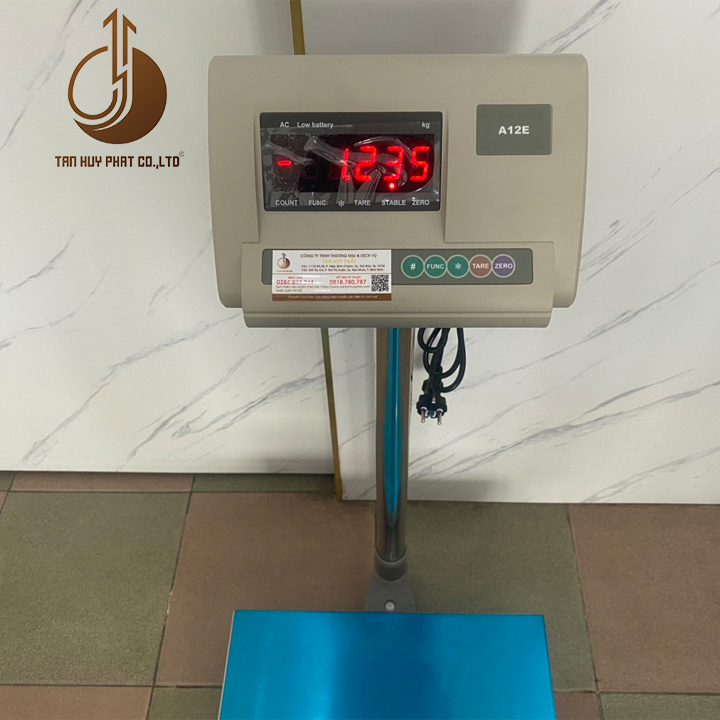 Chất liệu cân: Khung cân hợp kim thép vuông 4 sơn tĩnh điện dày 1.2 ly, mặt bàn cân inox dày 1.2 ly, đầu chỉ thị nhựa ABS.