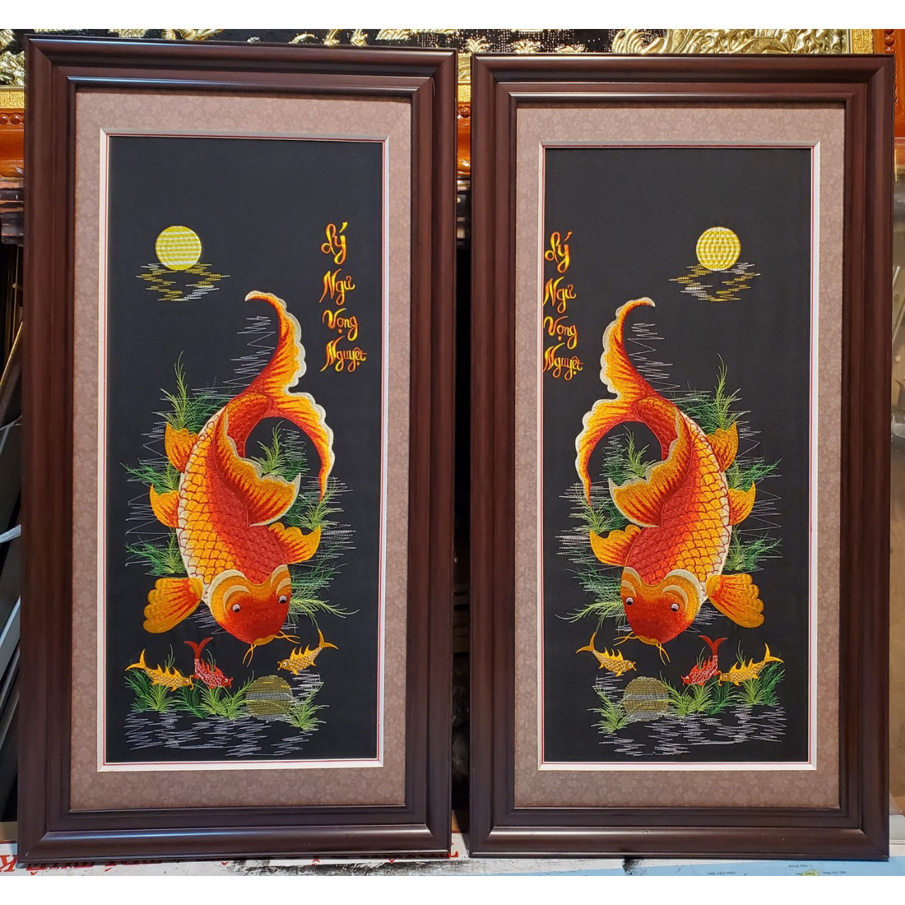 ✨CẶP CÁ CHÉP - LÝ NGƯ VỌNG NGUYỆT -TRANH THÊU