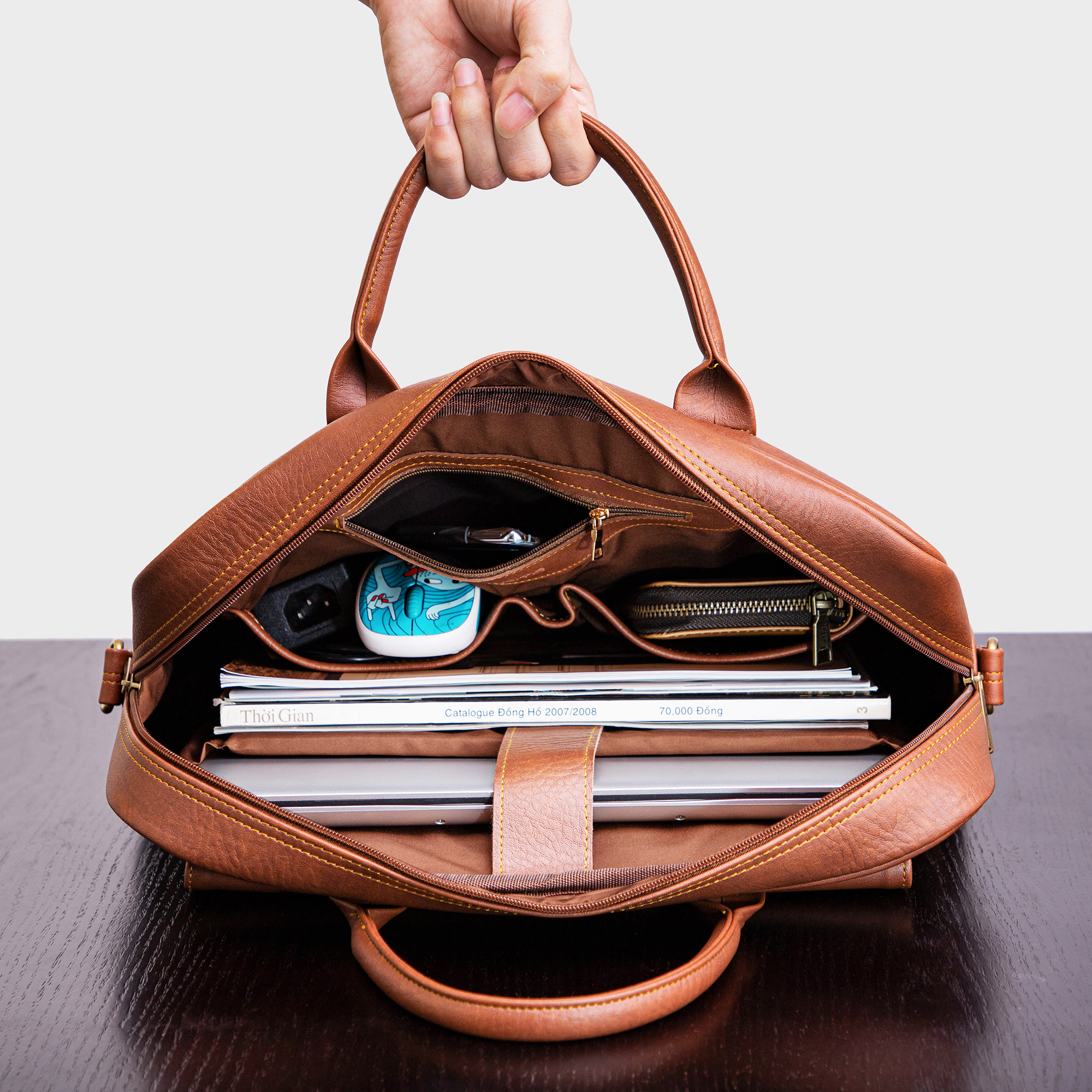 - NHIỀU NGĂN TIỆN LỢI: Chiếc cặp da gồm 8 ngăn. Ngăn lớn đựng vừa Laptop 15.6 inchs, điện thoại, ví tiền, sạc dự phòng, ô dù, tài liệu Aác ngăn phụ có khóa kéo, chàng dùng cất giữ đồ dùng hay giấy tờ quan trọng. Ngoài ra, chiếc cặp rất hữu ích khi đi công tác ngắn ngày: để vừa 4-6 bộ quần áo, đồ dùng cá nhân, các phụ kiện cần thiết cho chuyến công tác thành công.