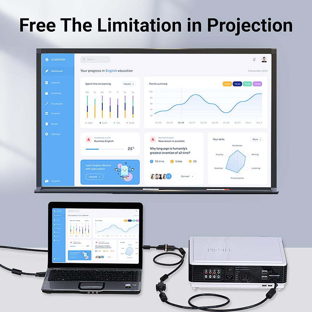 Features: Flat cable design and optimized fishtail, convenient to be hidden. 1080P HD supported to show attractive views. Laptop to projector, enlarge the file and show it clearly. Dual modes, dual-screen mirror mode and dual-screen