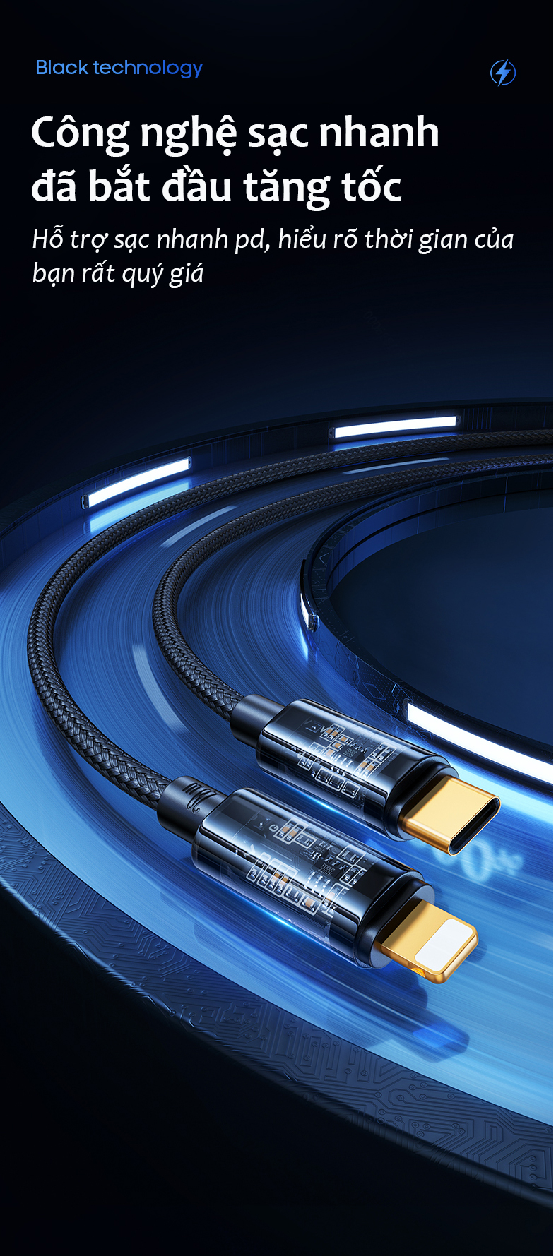 Cáp hỗ trợ chuẩn sạc nhanh PD (Power Delivery) với công suất tối đa 27W, lý tưởng để sạc các thiết bị như iPh, iPd và các điện thoại, máy tính bảng khác Đầu cáp