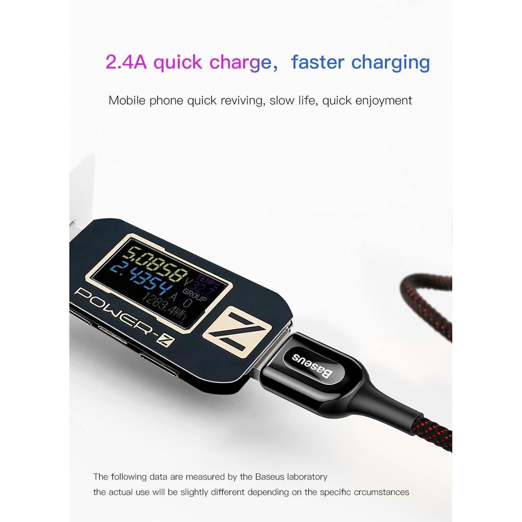Tính năng cơ bản Cáp Baseus X- shaped Light chân Lighting và Type C : Sạc nhanh,Sợi Carbon, Đầu kim loại siêu bền ,2.4 A, 3.0 A, 1 mét)