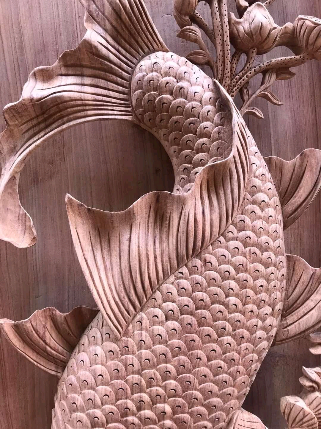 _ Siêu phẩm cặp tranh treo tường lý ngư vọng nguyệt được làm bằng chất liệu gỗ hương đá tự nhiên 100% Tranh ở ảnh dưới đang là dạng mộc ,trưa phun bóng ,Trờ phun