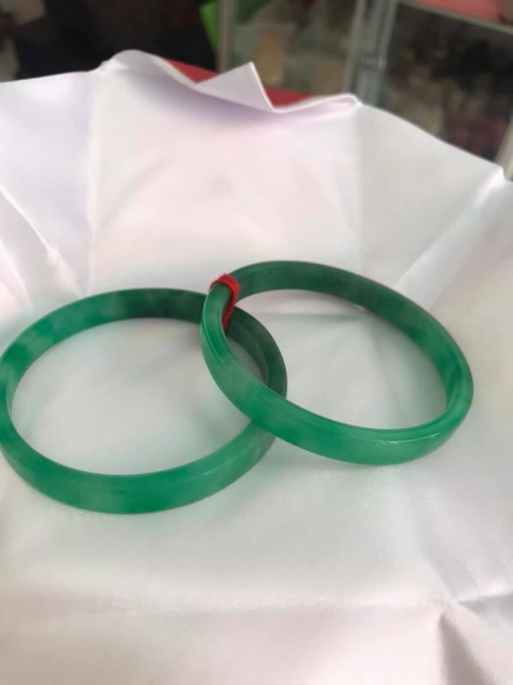 ✨Cặp Vòng Cẩm Thạch Bản Vuông 52mm Xanh Ngọc Lý Đậm Bóng Đẹp Ni 52mm x cao 7mm x dầy 4mm Nữ Mạng Thủy Mộc Hỏa 50kg -> 56kg đeo ạ