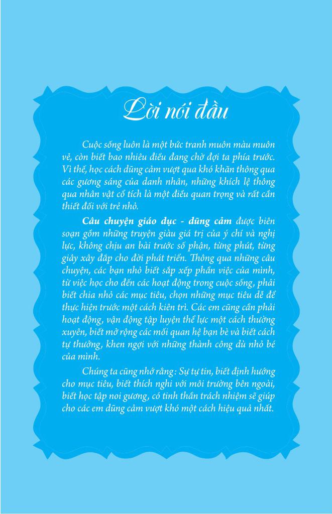 Câu chuyện giáo dục gồm 5 cuốn chủ đề về Tài trí, Kiên trì, Đạo đức, Dũng cảm, Nhân hậ được biên soạn gồm các truyện thuộc mọi thời đại, mọi xã hội trong và ngoài nước. Nội dung các câu chuyện thể hiện tấm lòng đạo đức, đức hiếu sinh, đạo đức buông xả, sự tài trí; lòng nhân hậu, sự kiên trì, dũng cả Giúp trẻ có những tấm gương sáng để học tập, rút được các kinh nghiệm ứng xử thật thông minh, hữu ích cho việc đối nhân xử thế.
