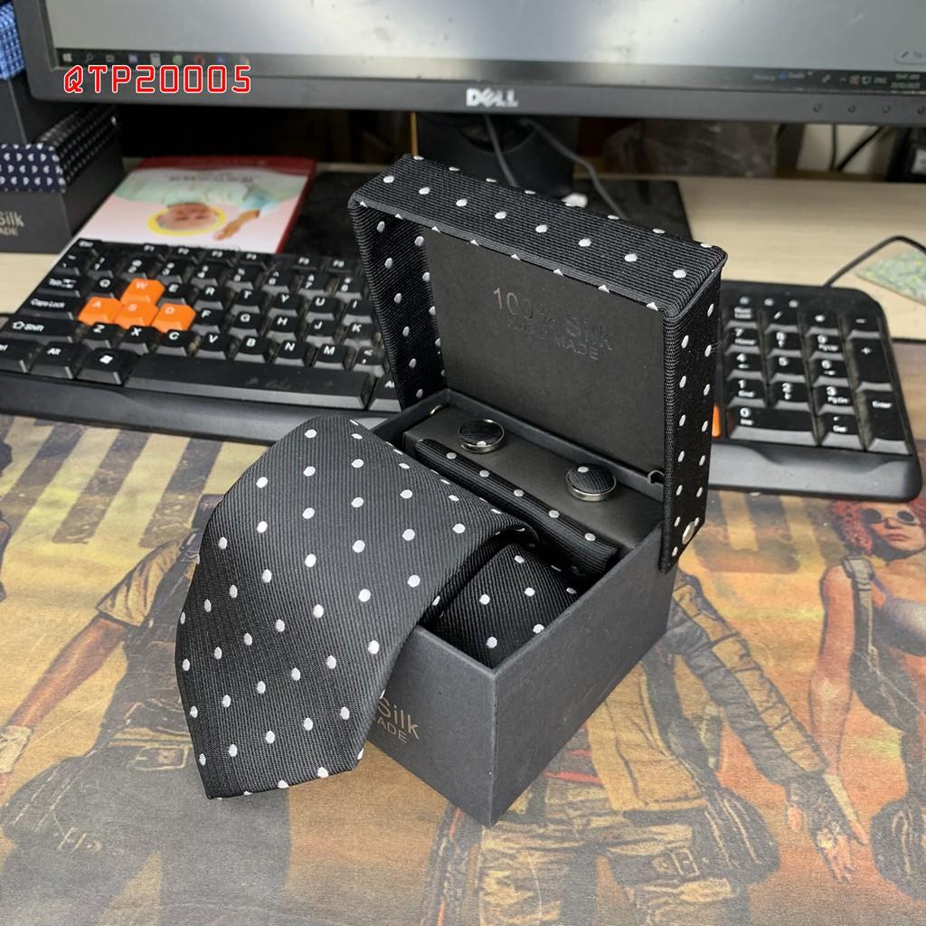 Cavat nam bản 8cm lót silk cao cấp nguyên hộp kèm khăn và khuy măng sét Giangpkc Qtp Sản phẩm cao cấp nguyên hộp quà tặng bản 8cm thích hợp cho trung niên - công