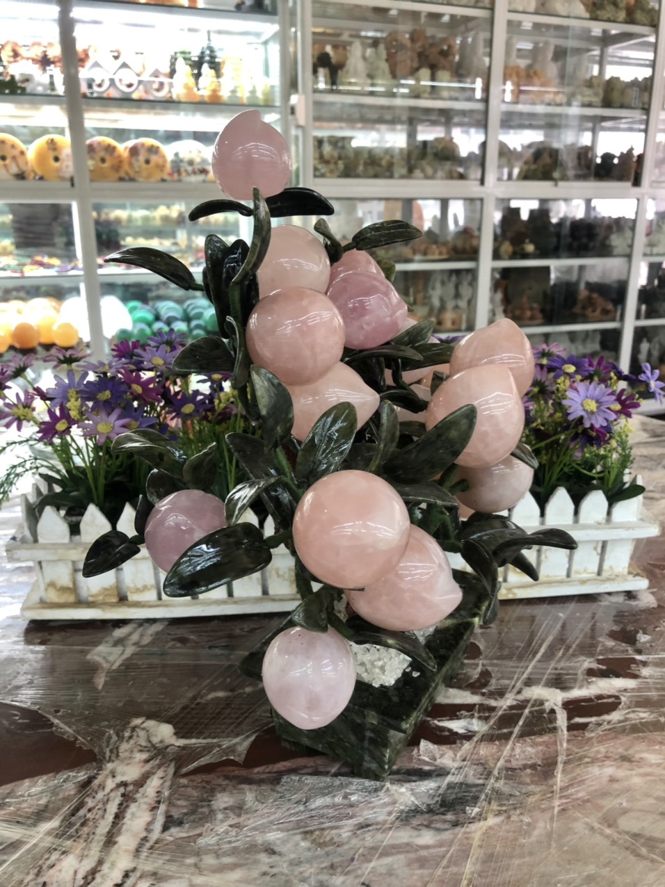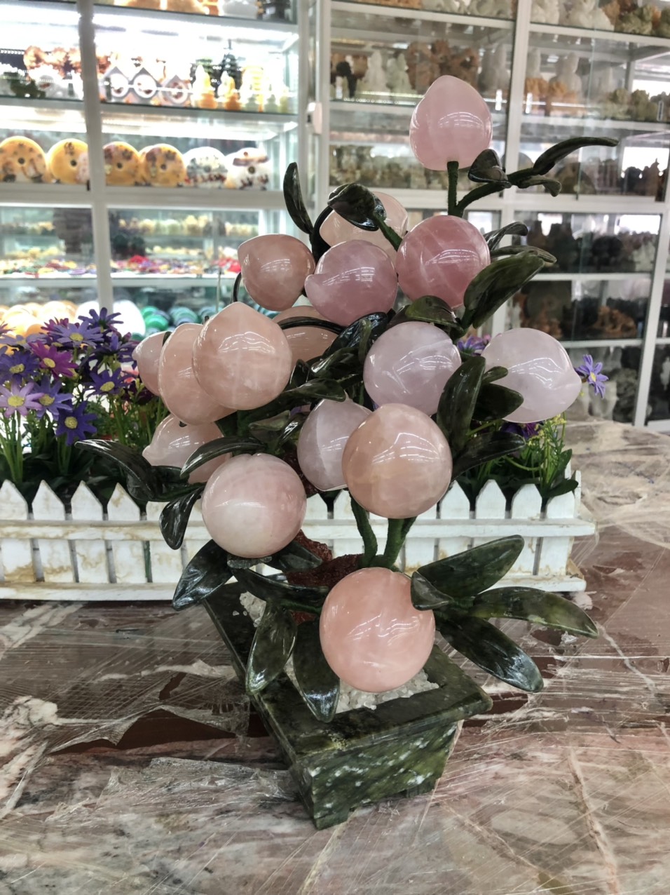 Cây đào phong thủy đá thạch anh hồng hàng đẹp 28 quả và 18 quả. Trường thọ, tài lộc ☎️: 0973156213
