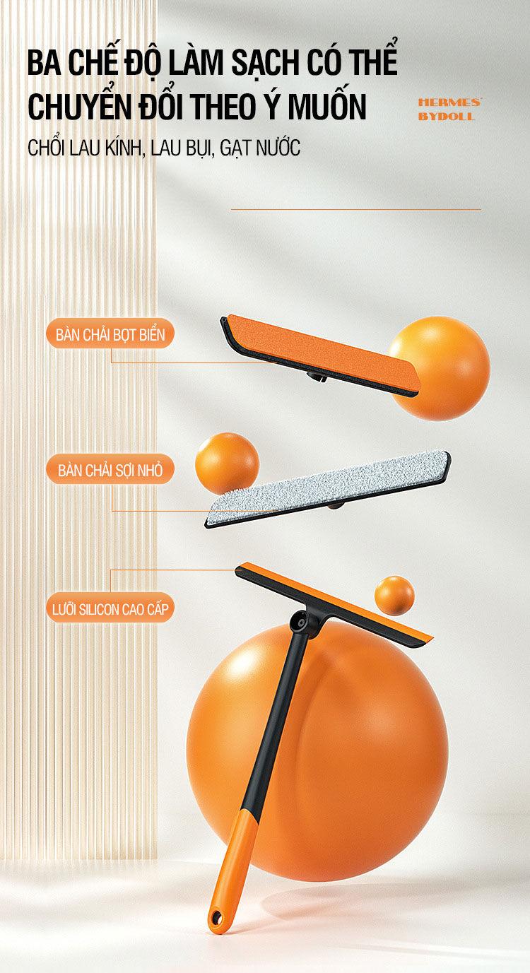 ✨Cây Lau Kính Thông Minh 3in1 Đa Năng Mini Xoay 360 Độ Nhỏ Gọn Tiện Lợi Với Tay Cầm Chống Trơn Màu Cam
