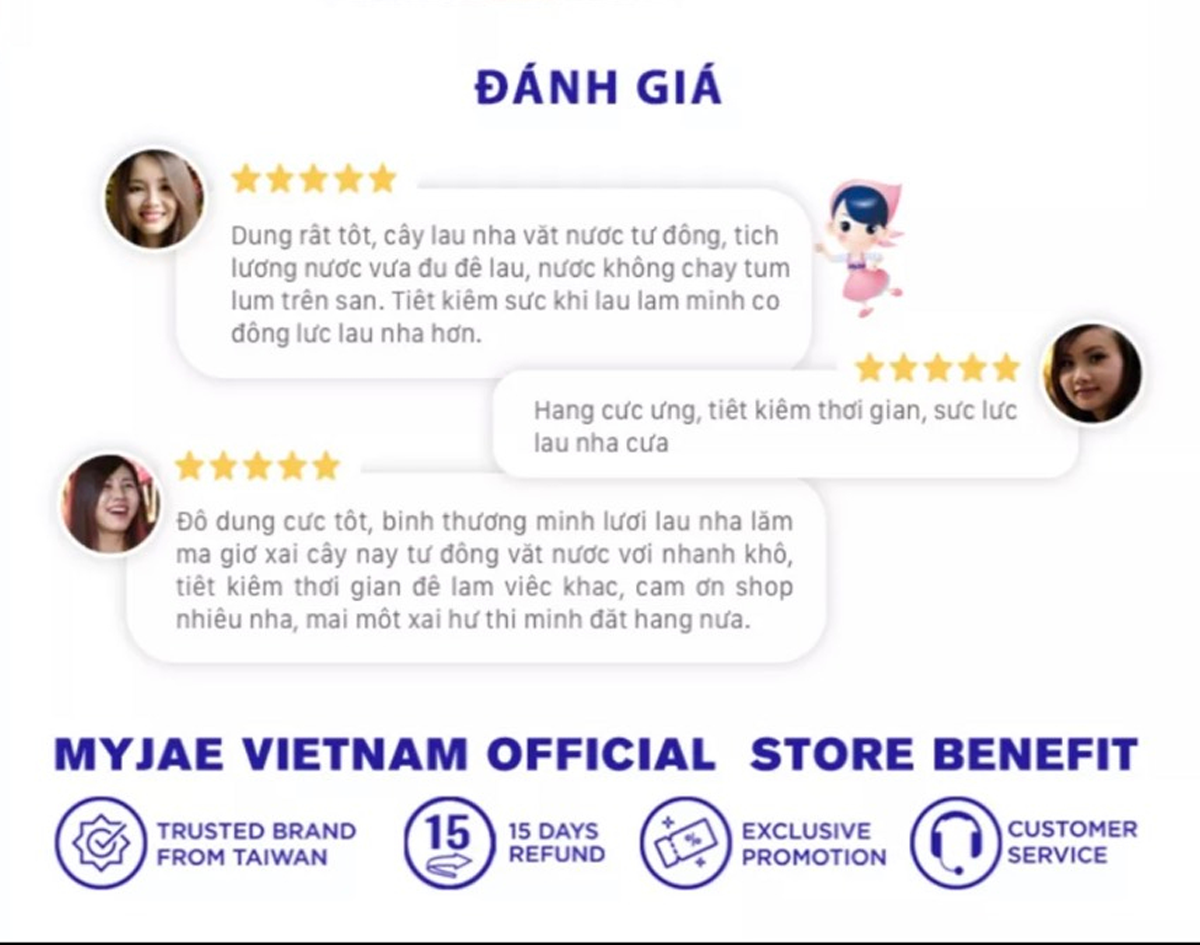 Cây lau nhà mút xốp PVA thông minh MyJae Đài Loan *Thông số kỹ thuật Thương hiệu : MyJae Tên sản phẩm : Cây lau đầu