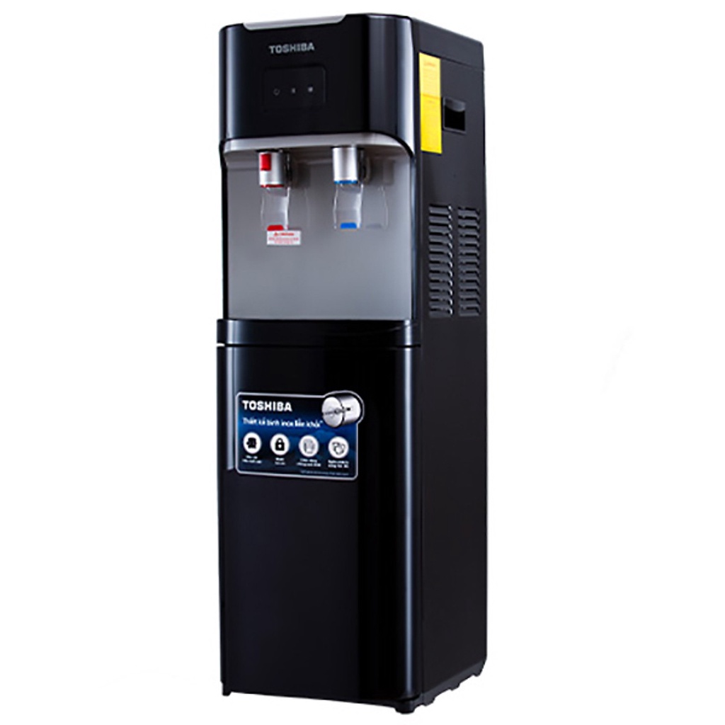 Cây nước nóng lạnh Toshiba thiết kế với màu đen sang trọng, kiểu dáng nhỏ gọn, hiện đại, dùng đẹp trong cả không gian kiến trúc gia đình, văn phòng, nhà hàng – khách sạn, khu