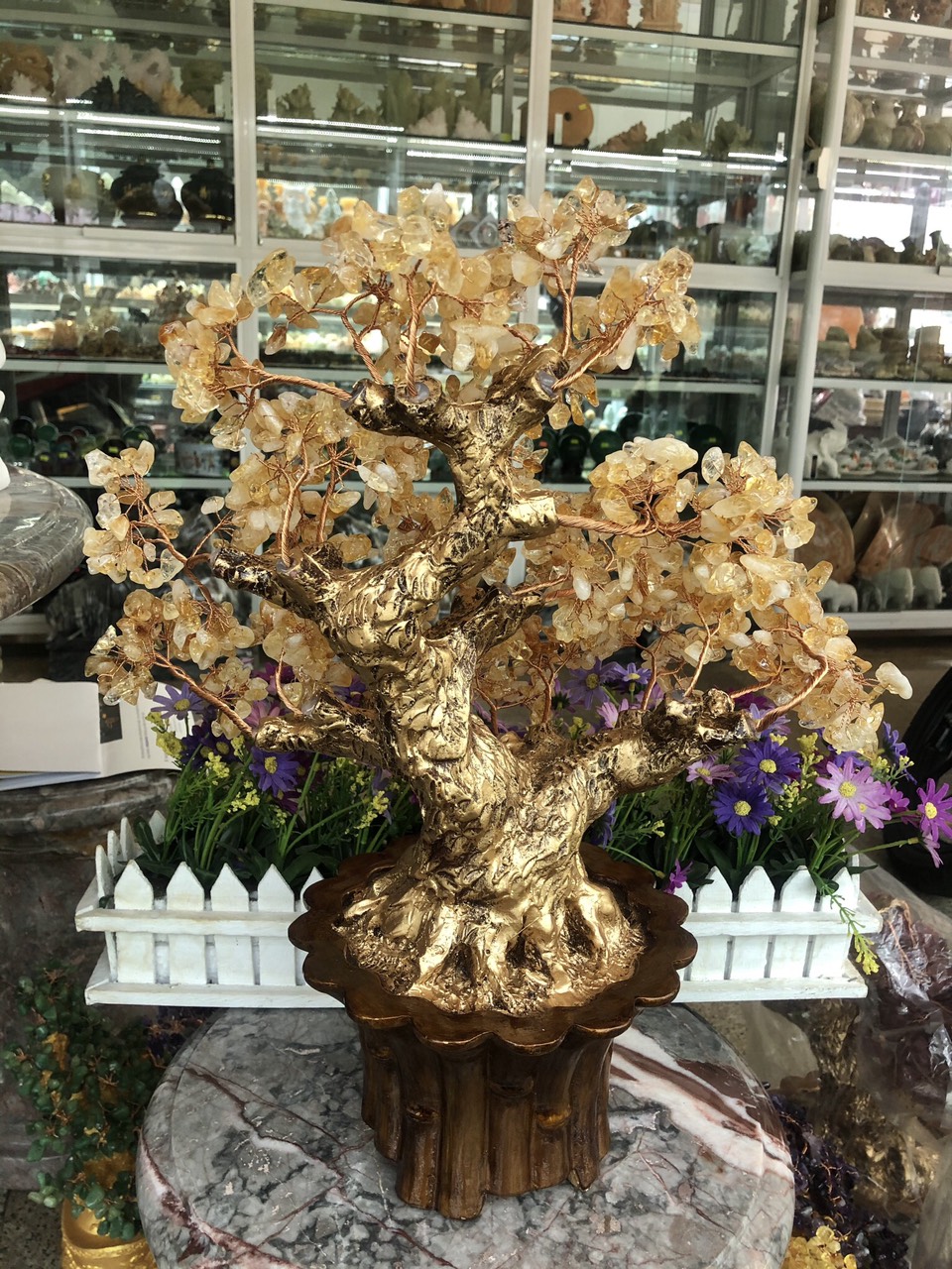 ✨Cây Tài Lộc phong thủy đá thạch anh vàng - Cao 45 cm