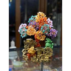 ✨Cây Tài Lộc với tiểu cảnh thiềm thừ cóc ngậm tiền và tỳ hưu phong thủy đá thạch anh ngũ sắc - Cao 30 cm
