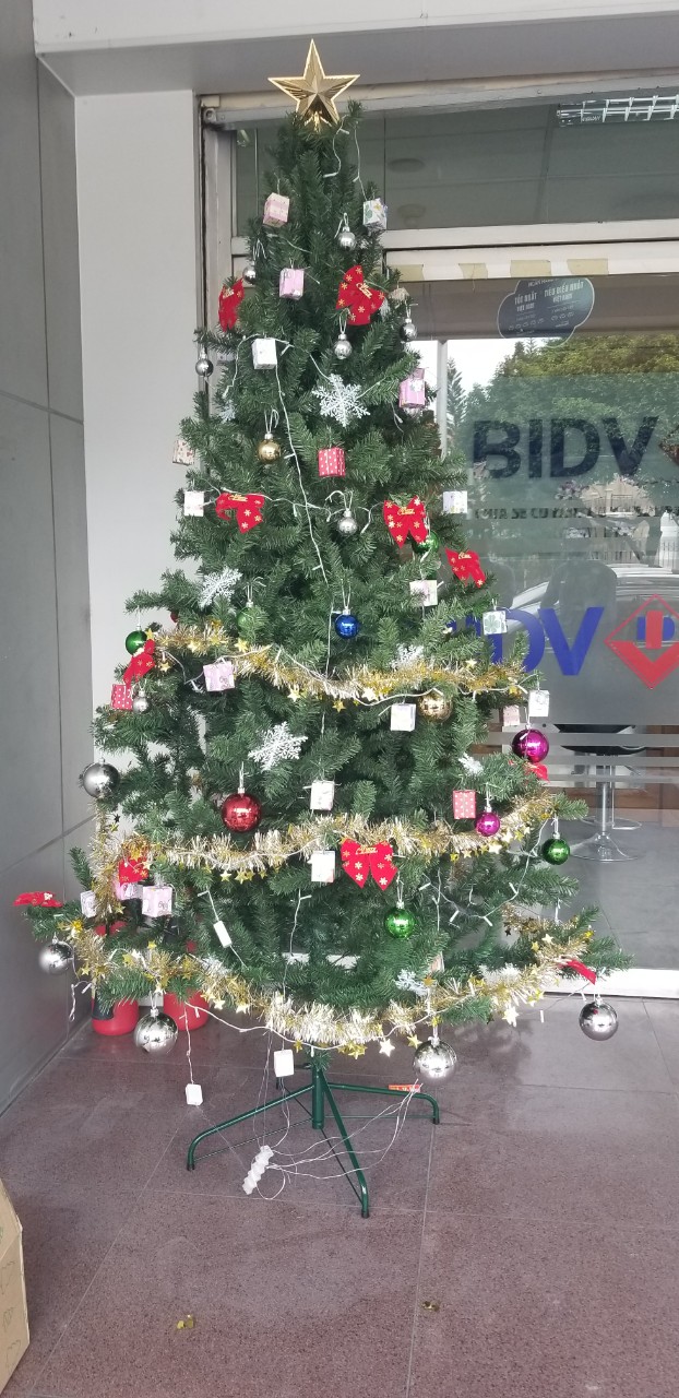 Với cây thông đẹp như vậy quý khách Chỉ cần thêm 1 hộp châu (quả cầu) khoảng 30 chi tiết, thêm ít bộ đèn nháy là có một cây thông lung linh, cho không khí Giáng Sinh tràn ngập ngôi nhà