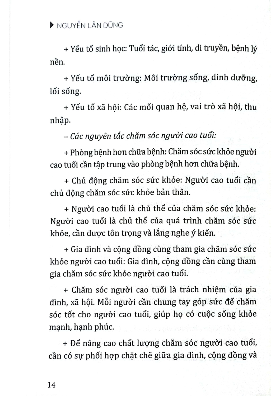 Cuốn sách Chăm Sóc Người Cao Tuổi của Nguyễn Lân Dũng là một nguồn tài liệu quý giá về việc duy trì và cải thiện sức khỏe cho người cao tuổi. Tác giả nhấn mạnh vào tầm quan trọng của việc chăm sóc để giúp họ duy trì sự độc lập và hạnh phúc. Qua việc thảo luận về các yếu tố ảnh hưởng đến sức khỏe như tuổi tác, môi trường sống và vai trò xã hội, cuốn sách không chỉ nhấn mạnh vào việc phòng ngừa bệnh tật mà còn khuyến khích gia đình và cộng đồng tham gia tích cực vào quá trình chăm sóc. Đây là tài liệu quan trọng giúp nâng cao nhận thức và chất lượng cuộc sống của người cao tuổi, đồng thời đề cao vai trò của sự hợp tác giữa các bên liên quan trong việc chăm sóc sức khỏe người cao tuổi.