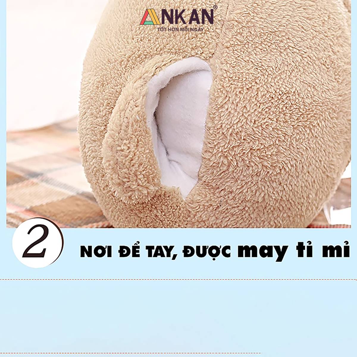Bộ Chăn Gối Văn Phòng Đa Năng Hình Thú Gấu Bông Dễ Thương, Tiện Lợi Cho Bé Đi Học Và Du Lịch CHĂN GỐI VĂN PHÒNG ANKAN CÓ GÌ ĐẶC BIỆT Thiết kế hình thú xinh xắn, phù hợp làm quà sinh nhật, quà tặng bạn bè, người yêu, đồng nghiệp. Đa năng 3 trong 1: vừa là gối ôm – gối tựa lưng – gối luồn tay, kèm chăn êm giữ ấm. Sử dụng tiện lợi cho nhiều mục đích: ngủ trưa văn phòng, đi học, đi làm, du lịch. Trên sản phẩm có nhãn chữ “はい” (hai) – nghĩa là “Vâng” trong tiếng Việt, mang đến cảm giác dễ thương, tích cực và gần gũi theo phong cách Nhật Bản. CAM KẾT TỪ ANKAN Sản phẩm đúng mô tả, đúng mẫu, đúng kích thước. Đổi trả trong 15 ngày nếu khách không hài lòng. Hoàn tiền 100% nếu sản phẩm lỗi do nhà sản xuất. Đóng gói sạch sẽ, an toàn, giao hàng nhanh chóng. THÔNG SỐ KỸ THUẬT Kích thước gối: 40 x 35 cm. Kích thước chăn: 100 x 170 cm (được lồng gọn trong gối). Chất liệu vỏ: vải nhung siêu mềm. Chất liệu ruột: bông PP cao cấp, an toàn cho da. Trọng lượng: khoảng 800g. Có 4 kiểu dáng để bạn lựa chọn là Cáo Đỏ, Cá Voi Xanh, Cừu Trắng và Gấu Nhật Bản ƯU ĐIỂM NỔI BẬT Vải nhung mềm mịn, thoáng khí, dễ giặt sạch.