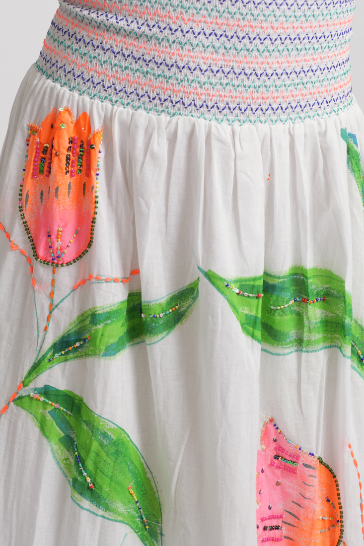 Chân váy thêu nổi bật, phối ren cao cấp, mềm mại, có lớp lót (50x110) Phù hợp đi biển, dạo phố hoặc dự tiệc Hướng dẫn sử dụng: Không sử dụng chất tẩy mạnh Giặt nhẹ