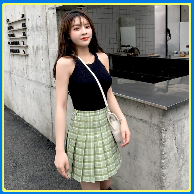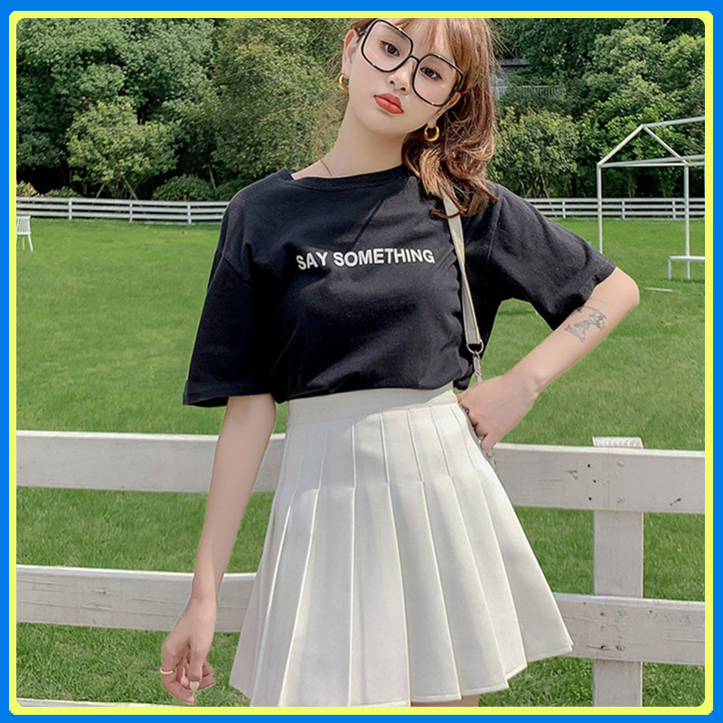 Chân váy tennis xếp ly màu trắng đen phong cách ulzzang