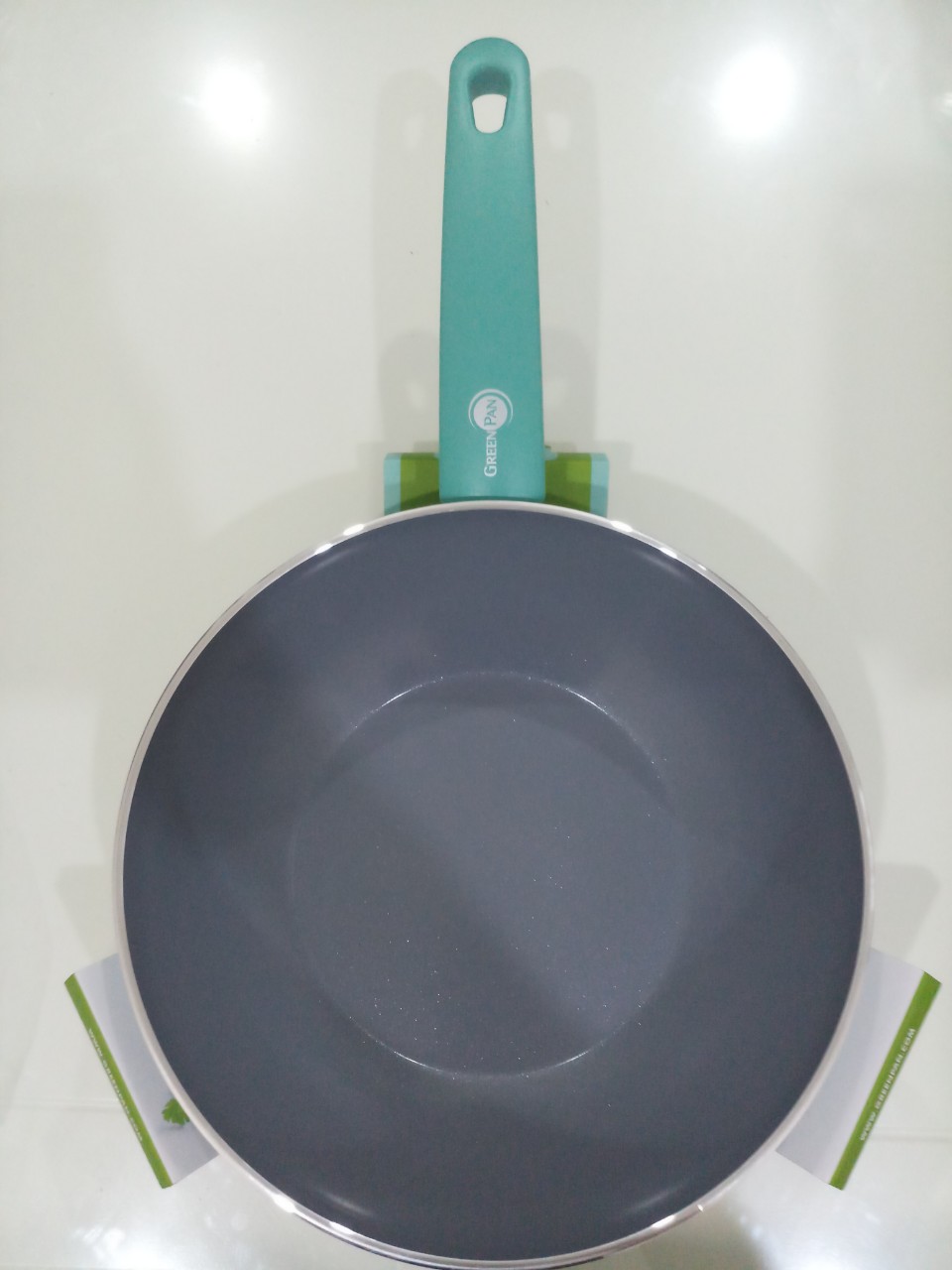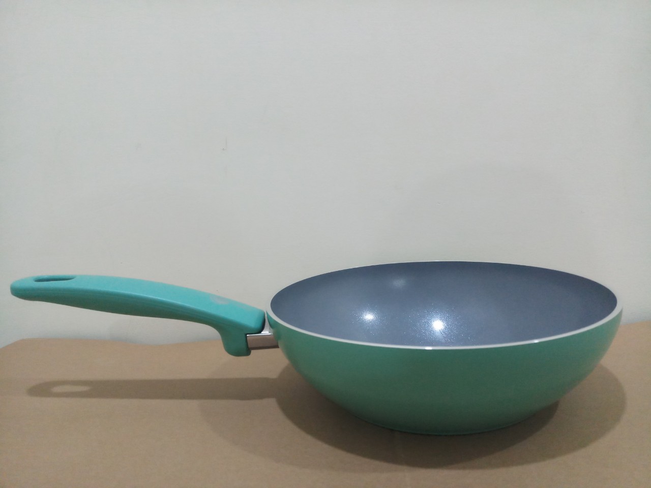 Là một chiếc chảo lòng cực rộng; dùng được đa năng như chiên, xào, nướng. Rất thích hợp làm BBQ. Chảo có hoạ tiết Blakcube được phủ lớp chống dính gốm màu ngọc xanh của