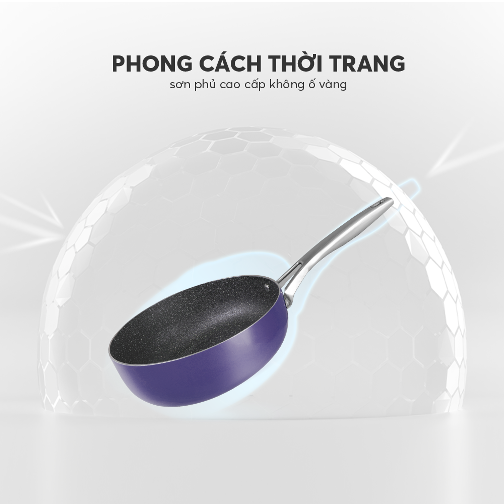 • Chảo tổ ong chống dính dạng tay cầm đáy liền 3 lớp Inox Sus304 vân chống trượt • Công nghệ Honey Comb - dạng tổ ong chống dính và chống quá nhiệt an toàn