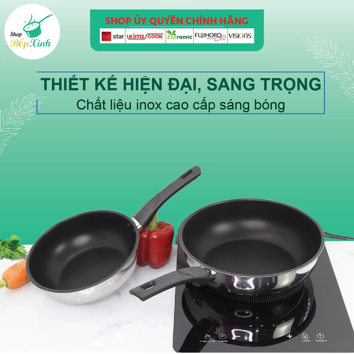 Thiết kế sang trọng và đẹp mắt Chất liệu inox 304 cao cấp Vung kính, tay cầm cách nhiệt Thiết kế sâu lòng, xào nấu tiện lợi