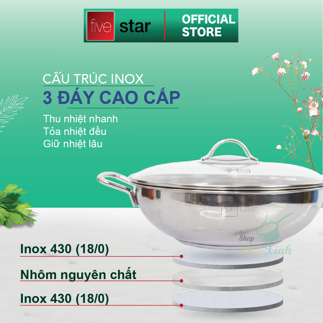 ✨Chảo Xào 3 Đáy Nắp Kính FivestarW32-3DG (32cm)