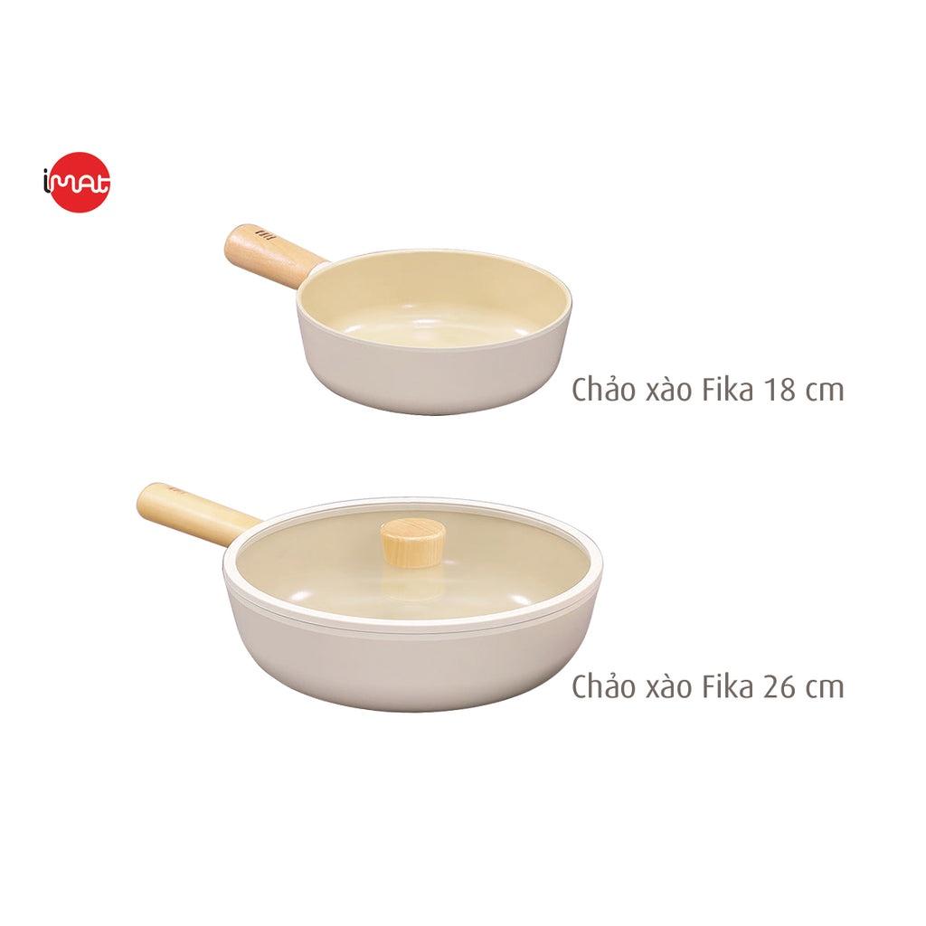 Chảo xào Fika có hai kích cỡ: Chảo 18cm và chảo 26cm có kèm vung. Sản phẩm được làm từ hợp kim nhôm đúc nguyên khối, cán gỗ tự nhiên. Chảo phủ gốm chống dính Xtrema cả hai mặt trong và ngoài. Chất liệu chống dính hoàn toàn từ tự nhiên nên an toàn cho sức khoẻ. Khả năng dẫn và giữ nhiệt cực tốt nên nấu món ăn dễ dàng và ngon hơn.