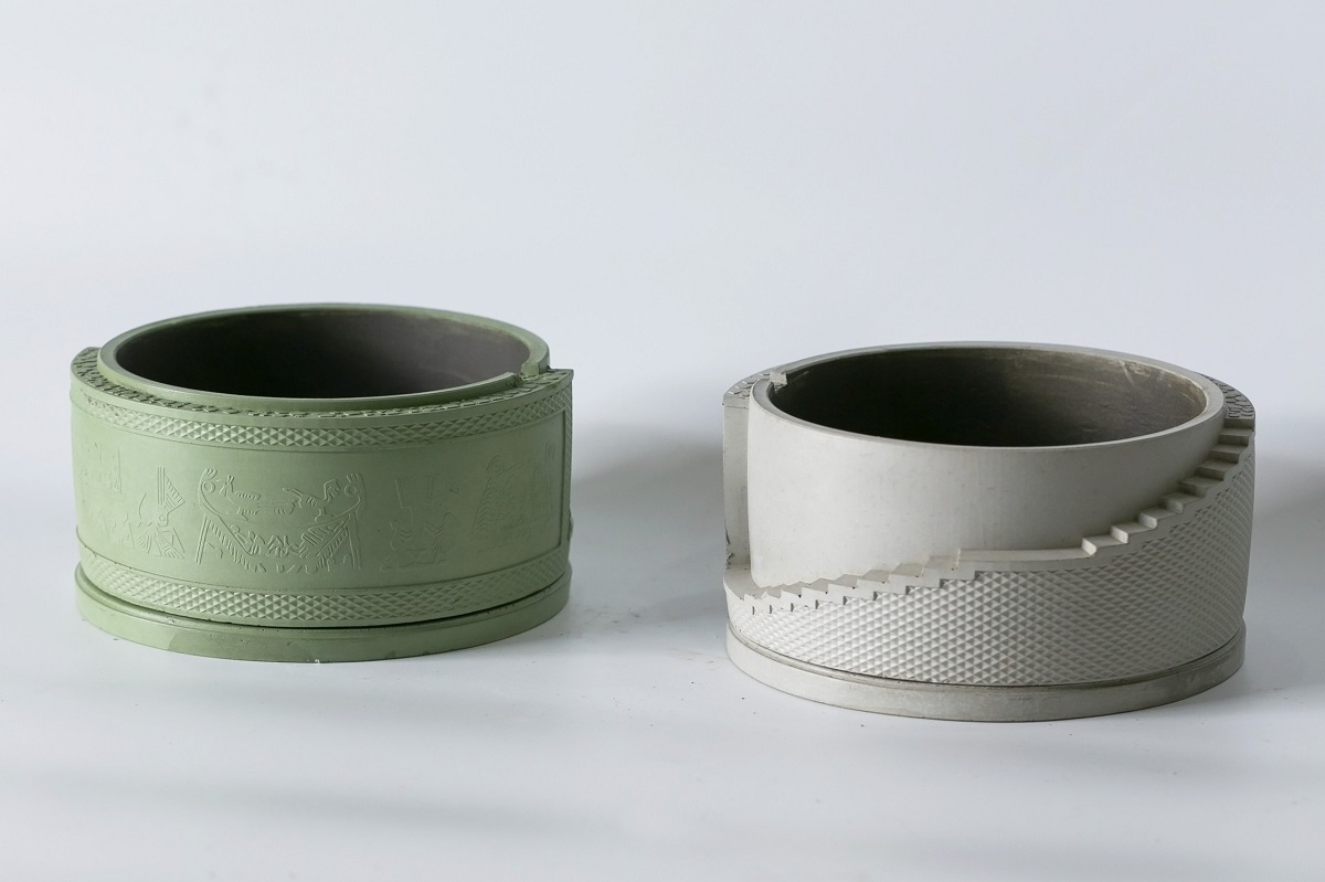 Chậu cây xi măng bậc thang với trang trí hoạ tiết Trống Đồng Đông Sơn, đường kính 18.4cm cao 8,5 cm, Hàng thủ công mỹ nghệ, quà tặng cao cấp, decor bàn làm việc, cây văn phòng, nhà ở