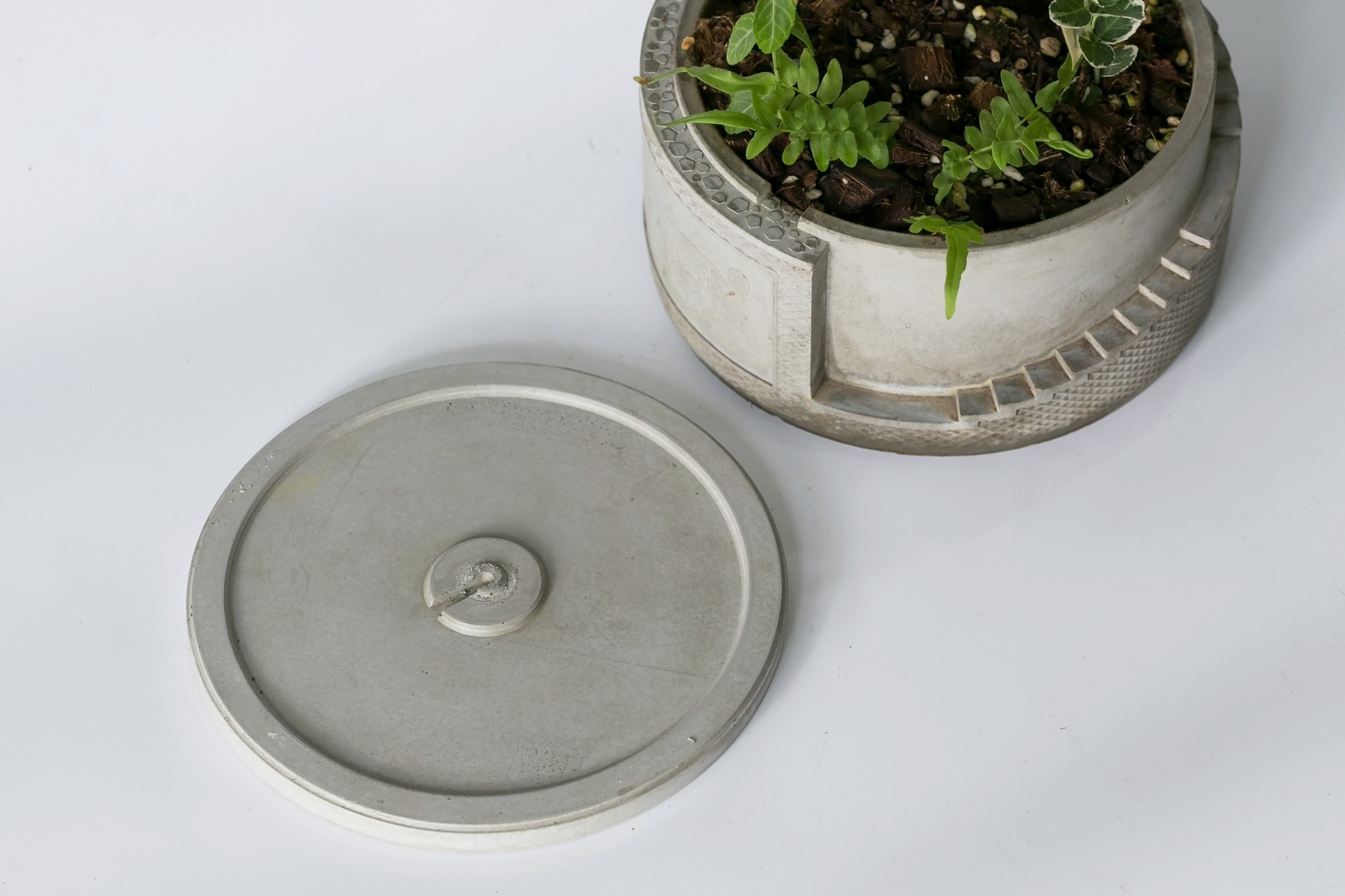 Hướng tới việc đem đến khách hàng có nhu cầu sử dụng chậu cây xi măng để bàn cao cấp, SeeArt đã sản xuất ra chậu cây xi măng hoạ tiết Trống Đồng Đông Sơn. Chậu có kích thước đường kính 18cm, cao 8,5 cm, chậu đi kèm với đĩa thu nước cao 1,5cm được thiết kế riêng. Chậu phù hợp đặt trên các bàn có kích thước dài và rộng tương ứng với 1,4 và 0,7m trở lên.