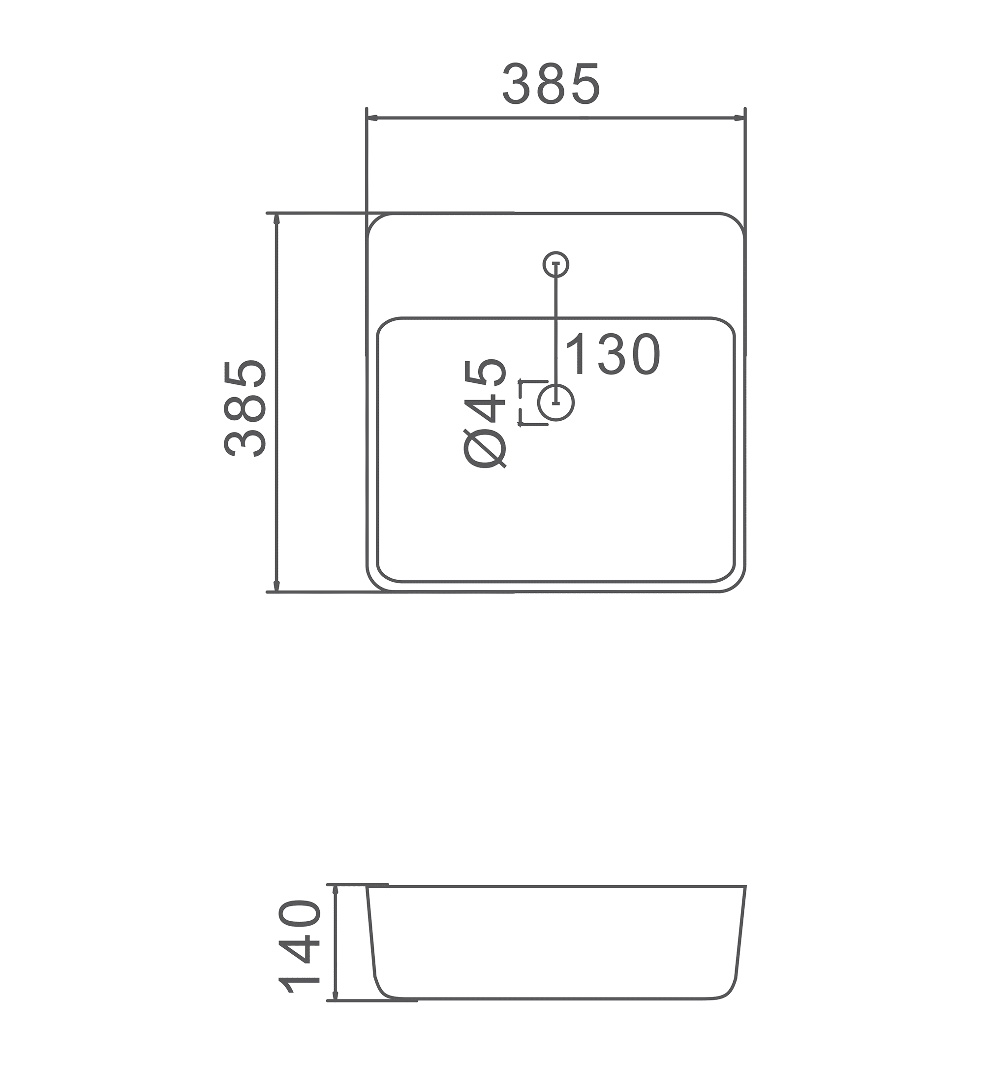 Kích thước: 385x385x140mm (Sản phẩm không bao gồm vòi lavabo, bộ xả….)