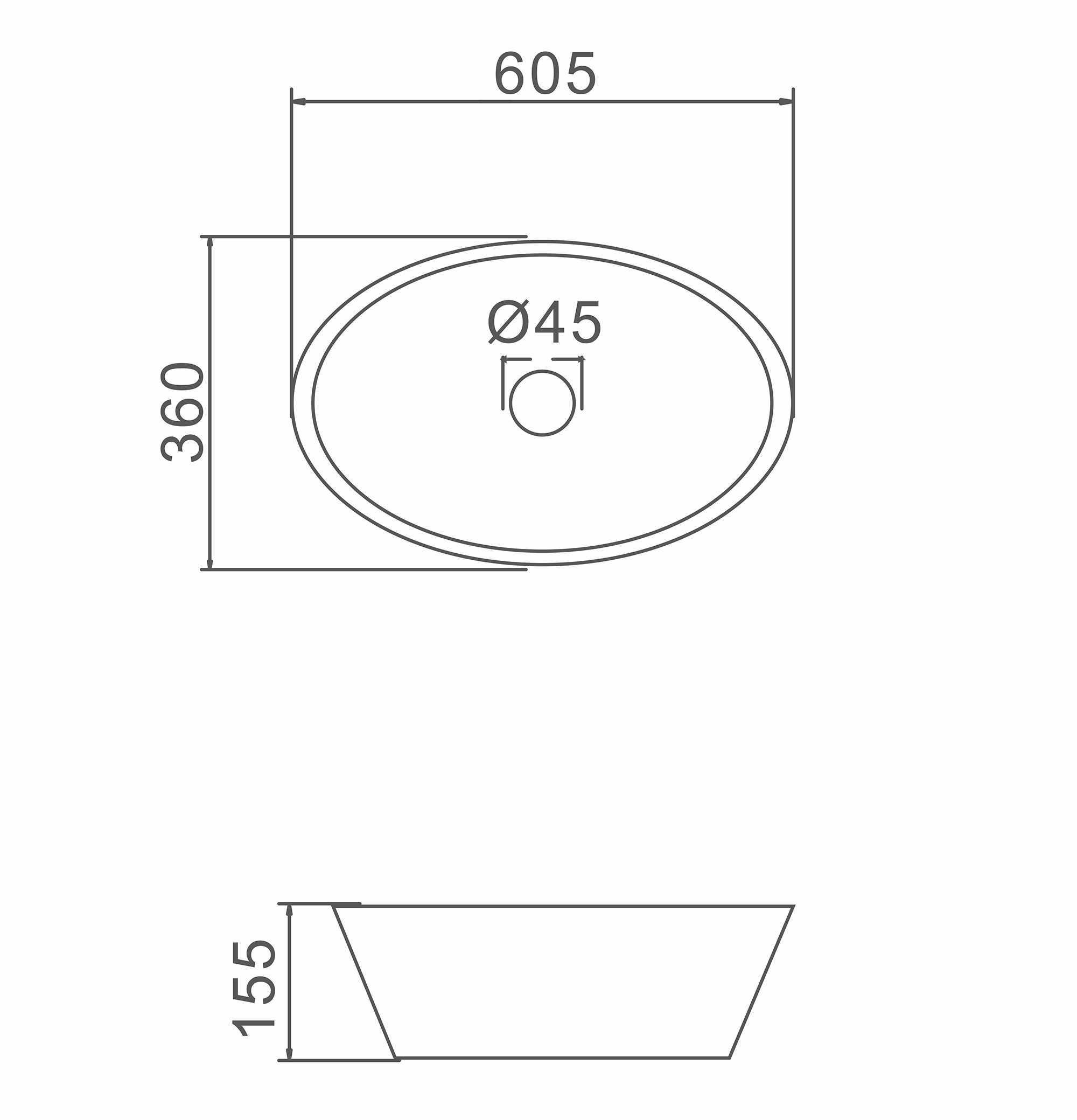 Kích thước: 605x360x155mm (Sản phẩm không bao gồm vòi lavabo, bộ xả….)