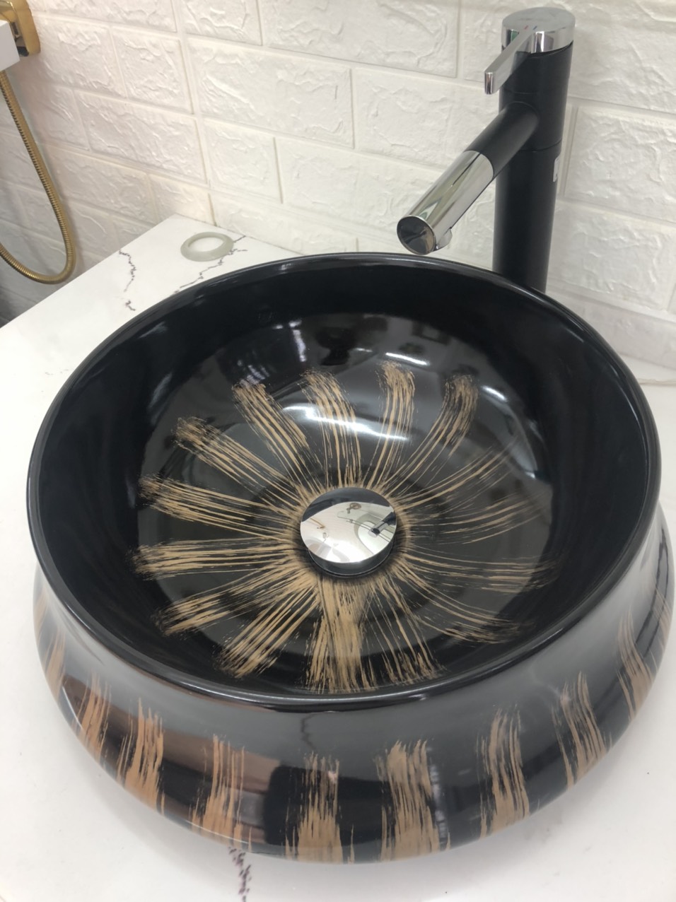 Chậu Lavabo Đen Hoa Văn Vàng TTCERA LB93