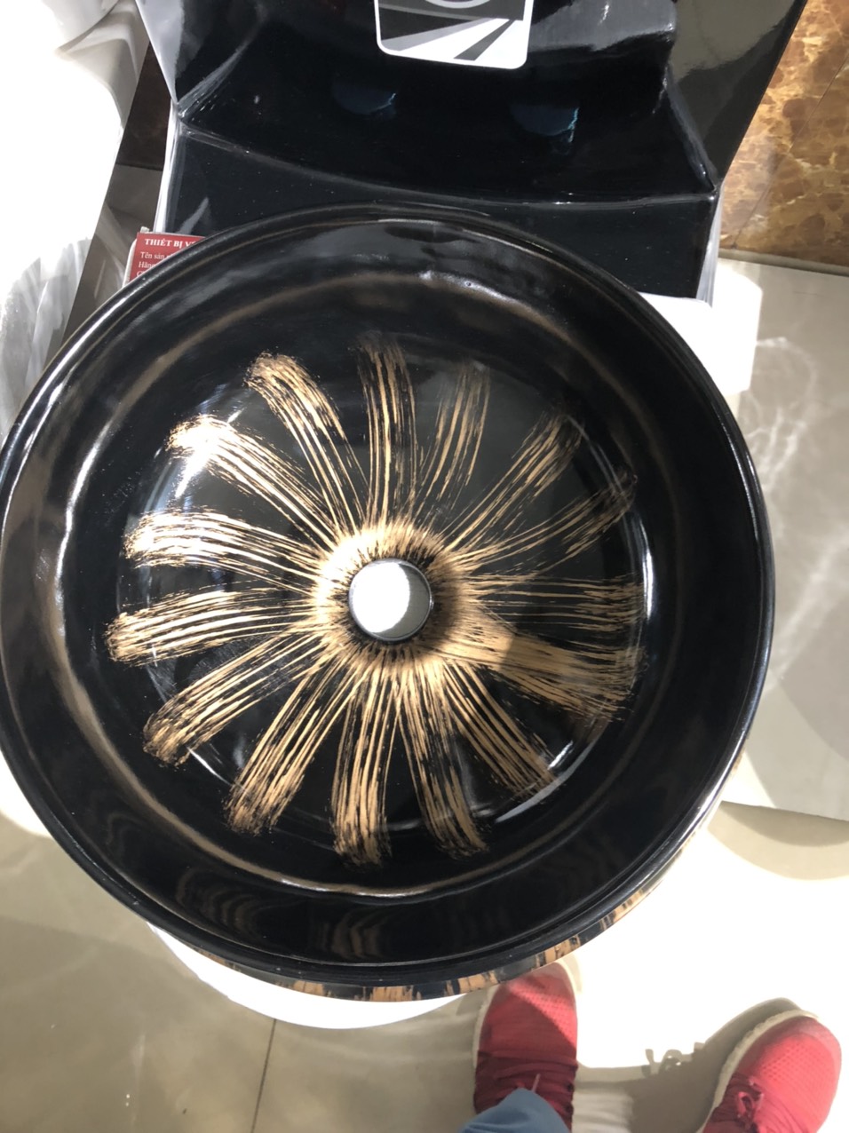 Chậu Tròn Đen Ánh Vàng GRVL04 ️ Thiết kế tinh tế, màu ĐEN bóng mặt trong và ngoài, ,Màu đen quét ánh vàng làm cho không gian phòng tắm trở lên hiện đại và huyền bí, phù hợp với dân ANH CHỊ, và các bạn ưa khám phá SẢN PHẨM MEN XI ĐEN ÁNH VÀNG công nghệ cao ️Chống bám bẩn, lau rửa dễ dàng ️Chất liệu sứ siêu bền