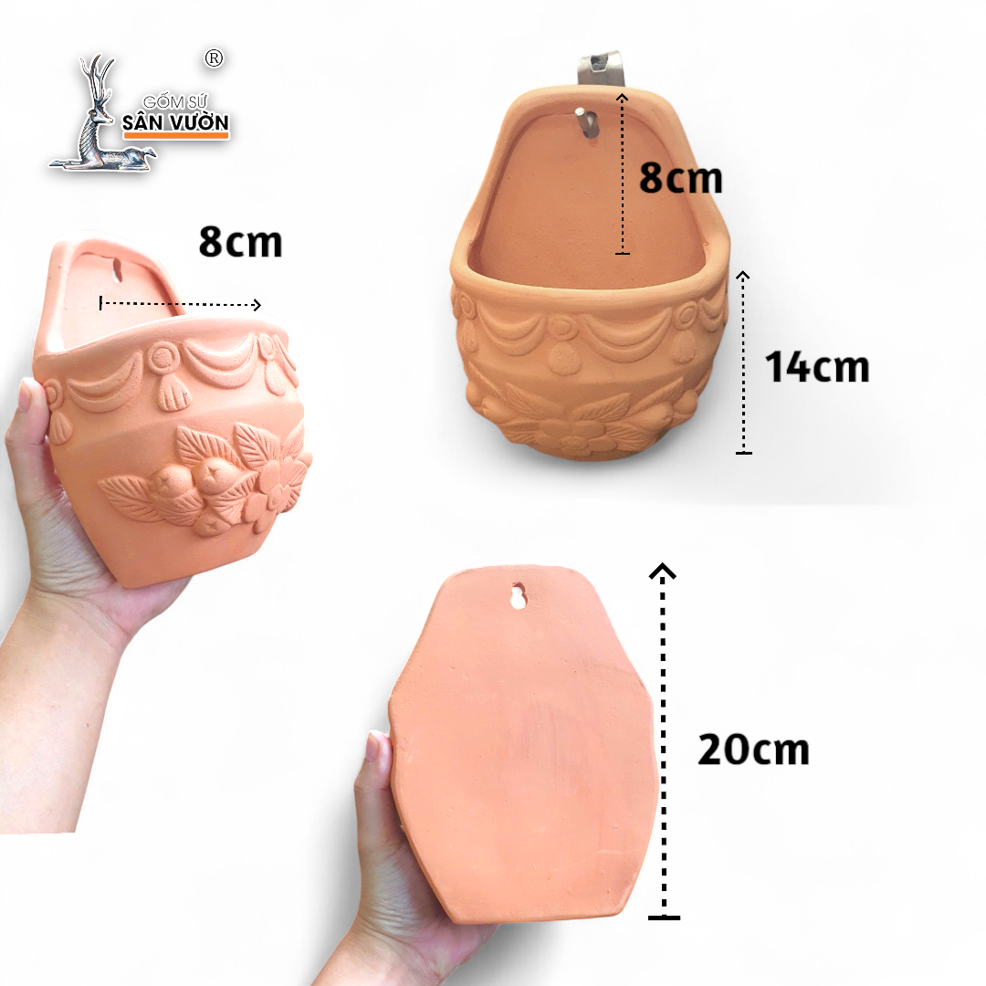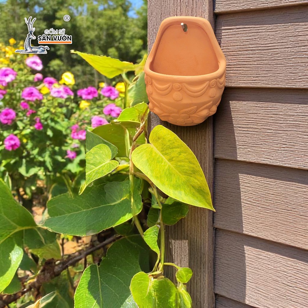 Chậu Ốp Tường Đất Nung Tròn Dáng Trứng Hoa | Trang Trí Ban Công Treo Tường | Rustic Balcony Decor | 14 ×17cm | Gốm Sứ Sân Vườn *ĐIỂM NỔI BẬT & TÍNH NĂNG Kích