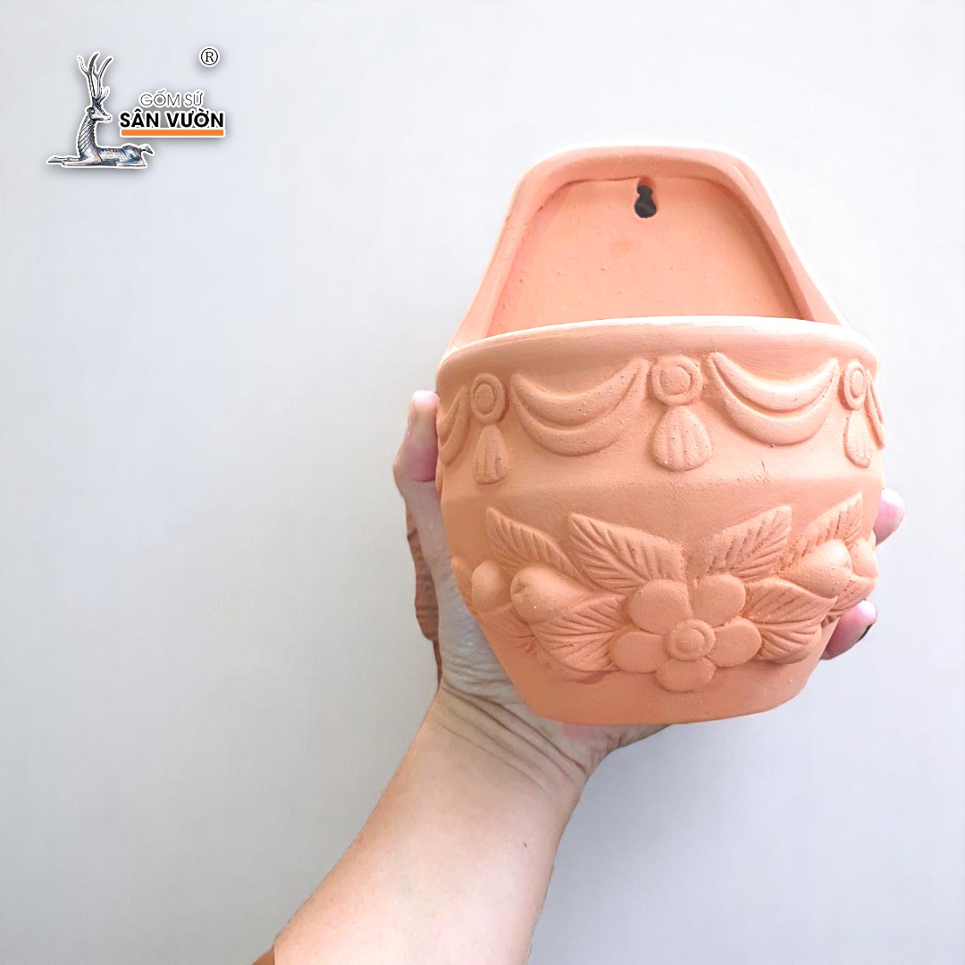 Mua tại TiktokChậu Ốp Tường Đất Nung Dáng Trứng Dẹp Hoa Văn Tinh Xảo | Trang Trí Treo Tường | Rustic Balcony Planter | Gốm Sứ Sân Vườn