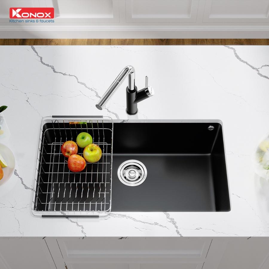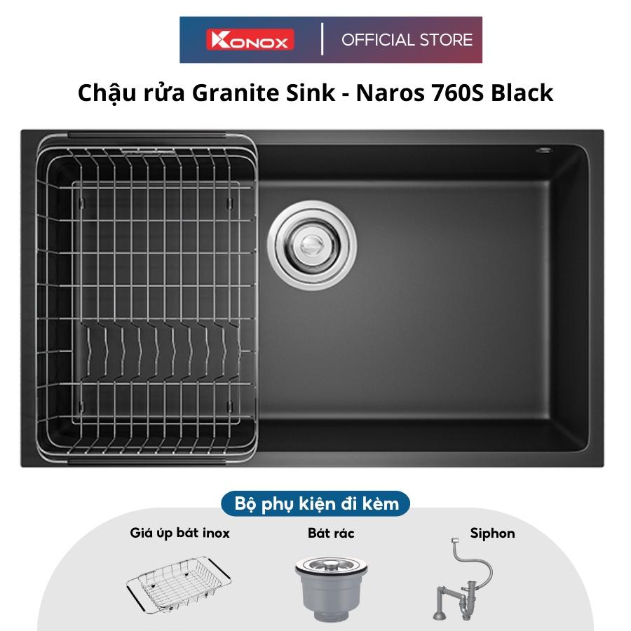Chậu Rửa Bát Konox Granite Sink Naros 760 Black | Siêu Phẩm Chậu Đá | BEP247.VN