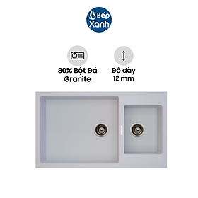 Chất liệu: Đá GRANITE Màu sắc: Trắng Độ sâu bồn: 240mm Kích thước: 838D x 557R mm Đóng gói: 1 bộ tiêu chuẩn túi PE, Foam (kèm Siphon)