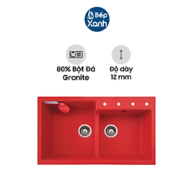 THÔNG SỐ KỸ THUẬT:  Thành Phần: 80% Bột Đá Granite Tự Nhiên Màu sắc chậu: 2 màu là Màu Đỏ (05) - Màu Vàng Tươi (06) Kích thước chậu: 860x500mm (DxR) Kích thước cắt đá lắp nổi: 840x480mm (DxR) Kích thước lòng chậu: 385x430mm / 370x430mm Kích thước tủ tối thiểu yêu cầu: 840mm Độ sâu lòng chậu: 205mm Độ dày: 12mm Lắp đặt: Lắp nổi, Lắp âm Đóng gói: Đầy đủ bộ xả (xiphong).