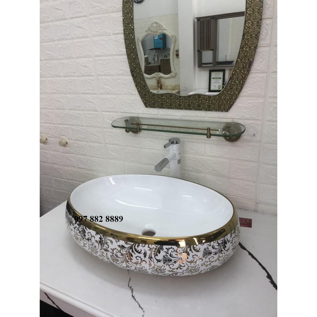 ✨Chậu rửa mặt, Lavabo hoa văn elip vàng cao cấp nhập khẩu chính hãng GROVES 065C (đẹp, sang trọng quý phái, sáng bền với thời gian)
