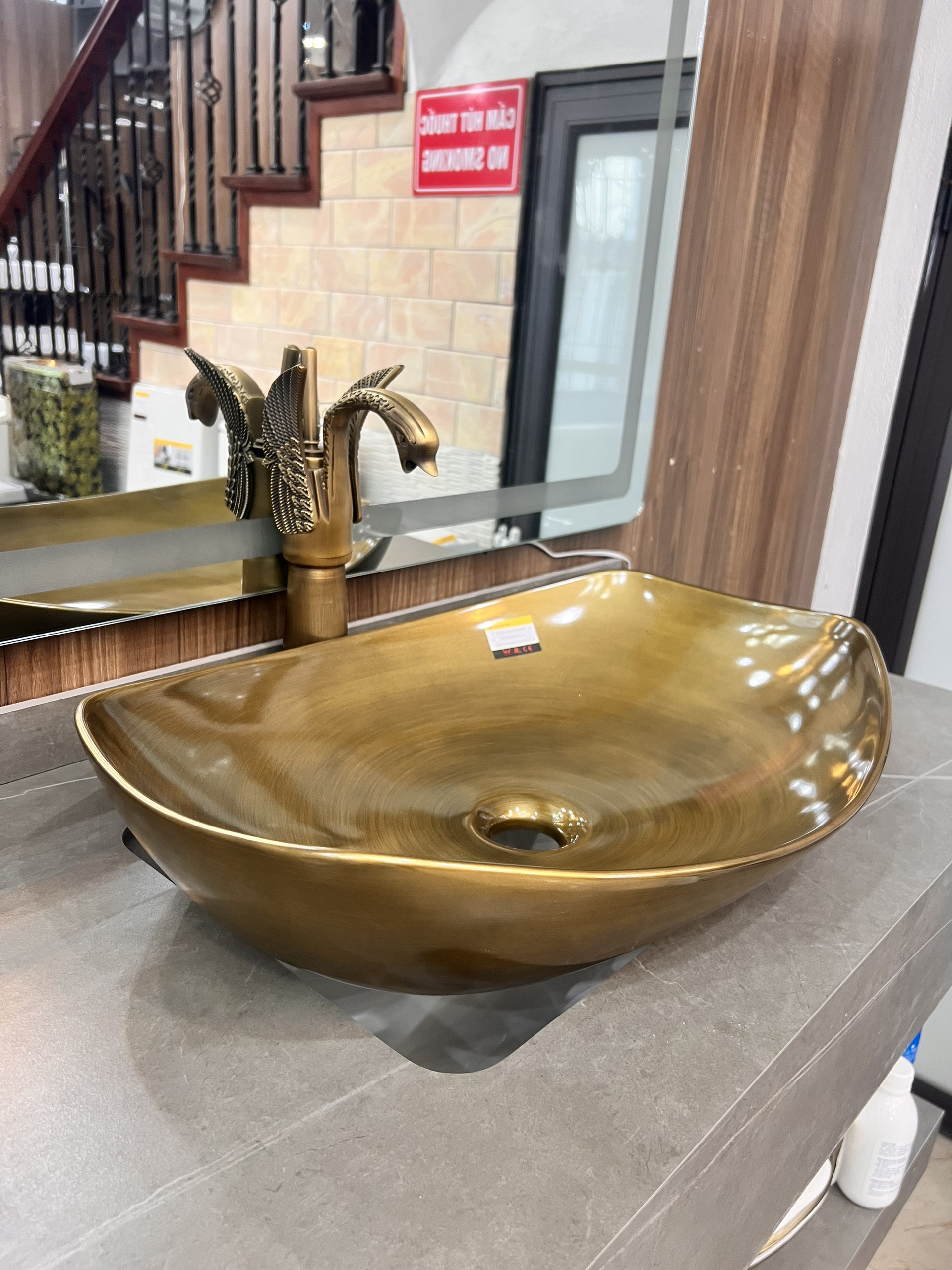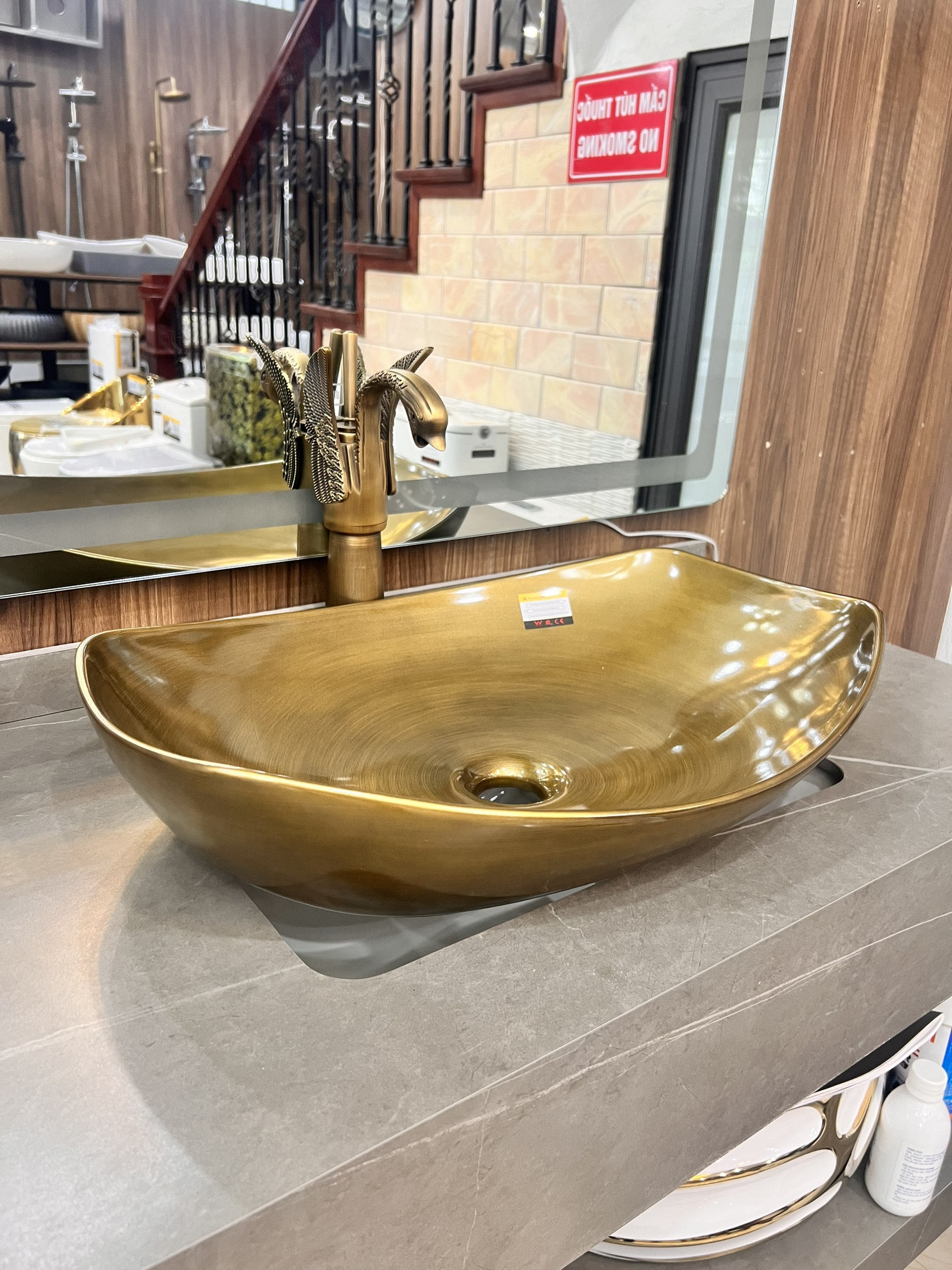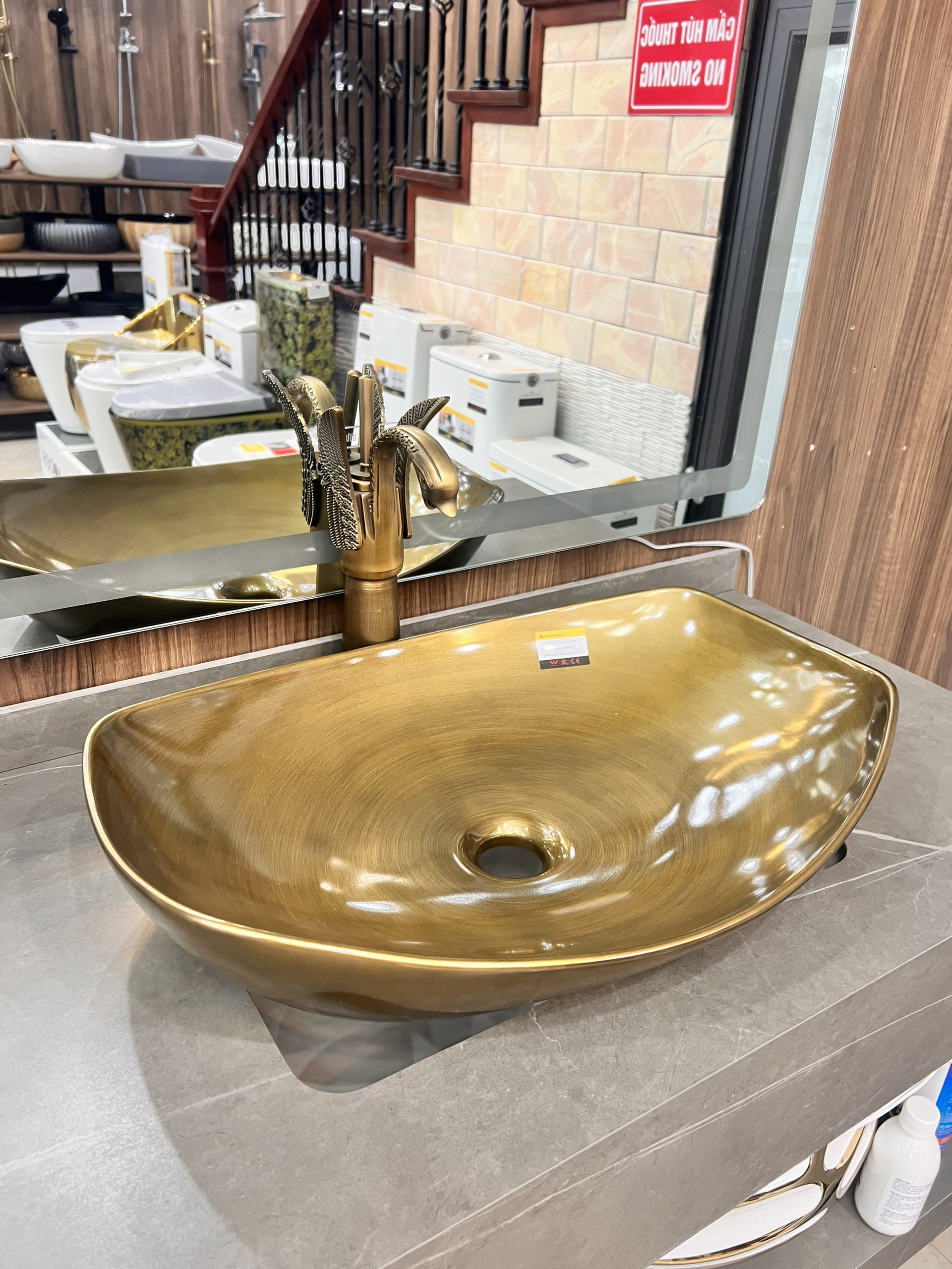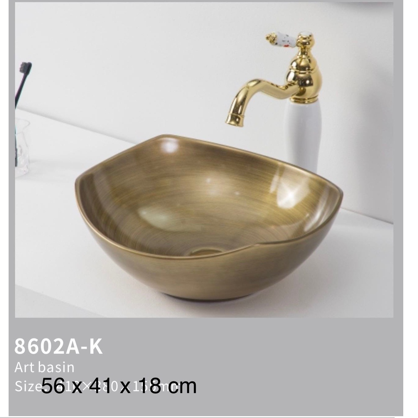 Nguyên liệu: Sử dụng đất sét và những nguyên liệu tối ưu từ thiên nhiên Lớp men sử dụng nguyên liệu khoáng chất thiên nhiên, không chứa Oxit Chì và các chất độc hại. Chậu rửa mặt dương bàn màu đồng bóng Kích thước: 560x410x180 mm Chất liệu : sứ nung nano chống bám bẩn , màu đồng bóng hạn chế bám bẩn Kiểu dáng : Màu đồng cổ kính