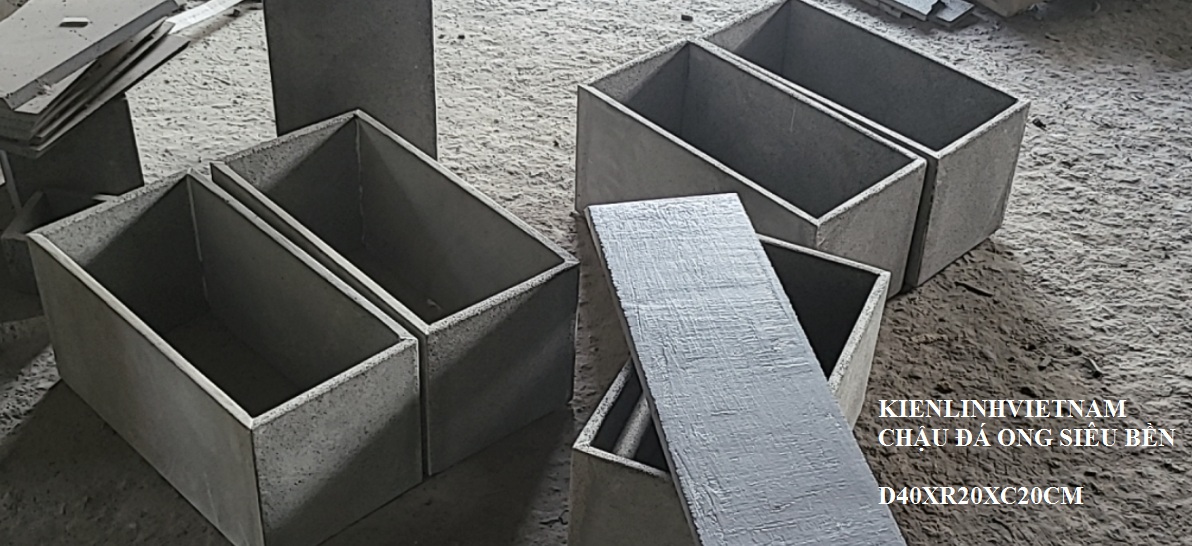 1.Chậu hình chữ nhật dài 40cm được làm từ chất liệu đá ong xám tự nhiên hay còn gọi đá núi lửa, loại đá cực tốt cho cây trồng giúp giữ ẩm cho đất và có các lỗ thông khí đất hấp thụ dinh dưỡng cho cây tốt hơn