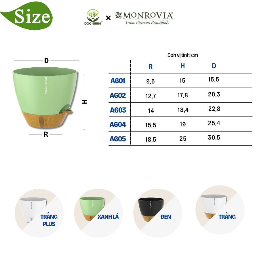 DOCNEEM XIN GIỚI THIỆU ĐẾN BẠN MÃ SẢN PHẨM - CHẬU TRỒNG CÂY TỰ TƯỚI THÔNG MINH MONROVIA H0 _ Chất liệu: PP cao cấp _ Cấu tạo: Chậu bao gồm hai lớp chậu *