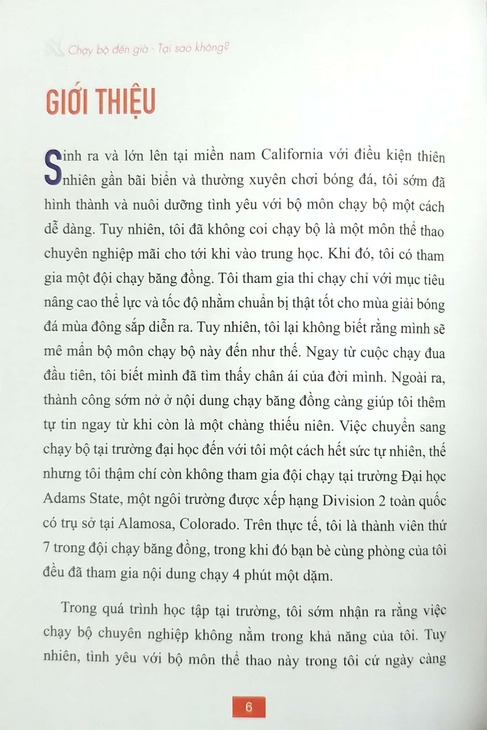 Và như vậy, Chạy bộ đến già - Tại sao không? ra đời, không phải chỉ để hướng tới đối tượng là những vận động viên lớn tuổi, mà còn là cuốn cẩm nang cho các vận động viên trẻ tuổi để biết cách giữ gìn và duy trì phong độ đỉnh cao lâu nhất có thể; cũng như không để thời gian cản trở đam mê.