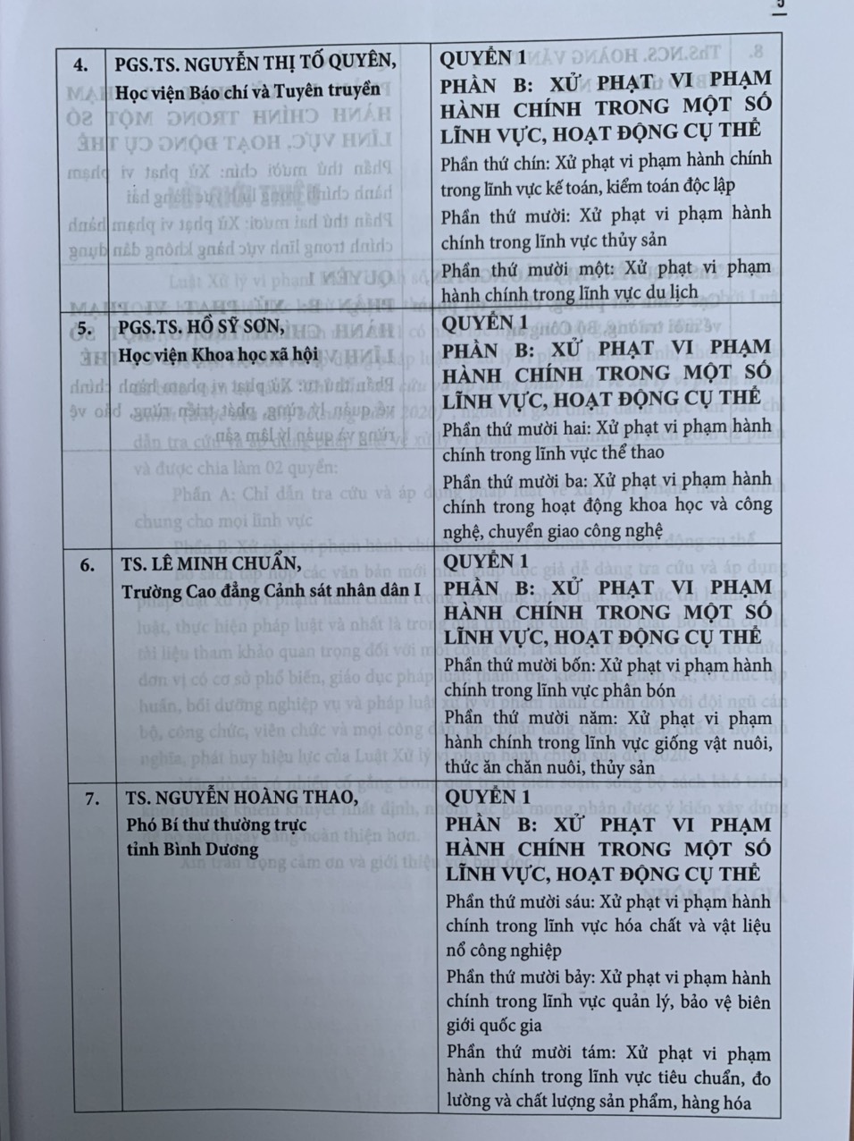 pháp luật xử lý vi phạm hành chính trong xây dựng pháp luật, tổ chức thi hành pháp luật, thực hiện pháp luật và nhất là trong quá trình áp dụng pháp luật. Bộ sách còn là tài liệu tham khảo quan trọng đối với mỗi công dân; là tài liệu để các cơ quan, tổ chức, đơn vị có cơ sở phổ biến, giáo dục pháp luật; thanh tra, kiểm tra, giám sát; tổ chức tập huấn, bồi dưỡng nghiệp vụ và pháp luật xử lý vi phạm hành chính đối với đội ngũ cán bộ, công chức, viên chức và mọi công dân, góp phần tăng cường pháp chế xã hội chủ nghĩa, phát huy hiệu lực của Luật Xử lý vi phạm hành chính sửa đổi 2020.