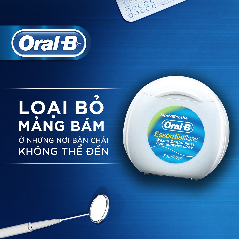 THÔNG TIN SẢN PHẨM Chỉ nha khoa Oral-B Essential Floss (50m) Bàn chải đánh răng không thể làm sạch những nơi khó tiếp cận, và đó là nơi mảng bám tích tụ Với lớp phủ
