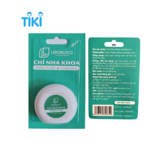 CHỈ NHA KHOA LIWORLDCO (NEW) Thành phần: Nylon, Pebax, Microcrystalline, Wax Công dụng: Làm sạch mảng bám và thức ăn trong kẻ răng Hướng dẫn sử dụng: Lấy một đoạn chỉ dài khoảng 30-40cm, cuộn 2 đầu chỉ