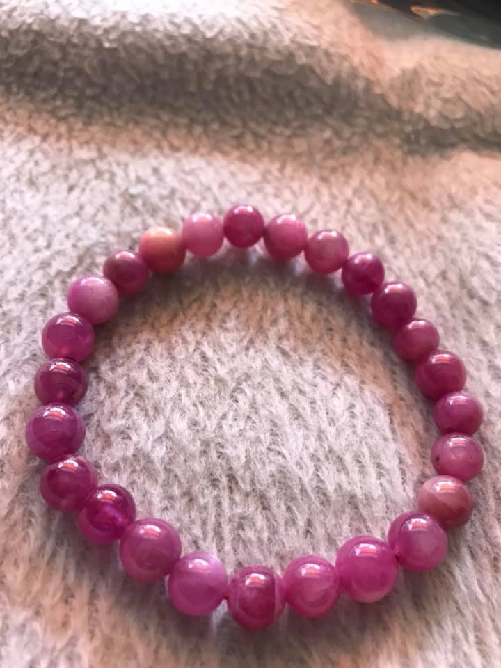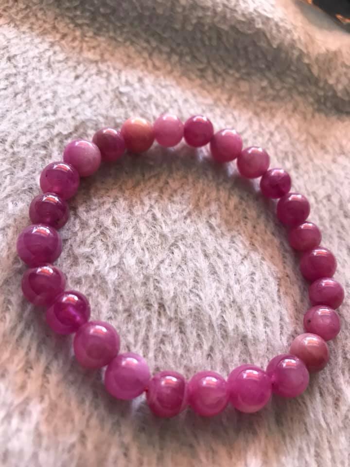 CHIẾC VÒNG TAY NỮ ĐÁ RUBBY HỒNG CÁNH SEN ĐẸP SIZE VÒNG 8LY ĐÚNG CUNG SANH HỢP NỮ MỆNH HỎA MỆNH THỔ 100% ĐÁ RUBBY HỒNG TỰ NHIÊN Ạ