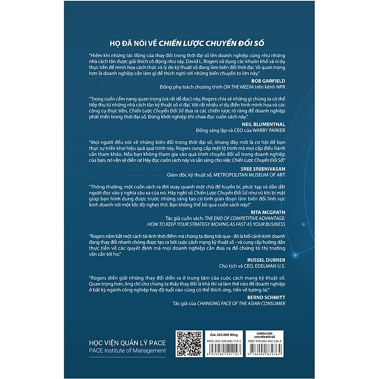 Tác giả nổi tiếng và cố vấn cấp cao David L. Rogers chỉ cho chúng ta cách suy nghĩ vượt ra ngoài sự biến đổi của các công nghệ mới và xây dựng lại tổ chức của họ cho một thế giới thay đổi liên tục, cuốn sách Chiến lược chuyển đổi số trình bày cách thức mà các doanh nghiệp có xuất phát điểm từ giai đoạn trước thời đại số có thể chuyển đổi, tái tạo các kế hoạch và chiến lược, từ đó tận dụng được những cơ hội mới trong thế giới kỹ thuật số ngày nay.