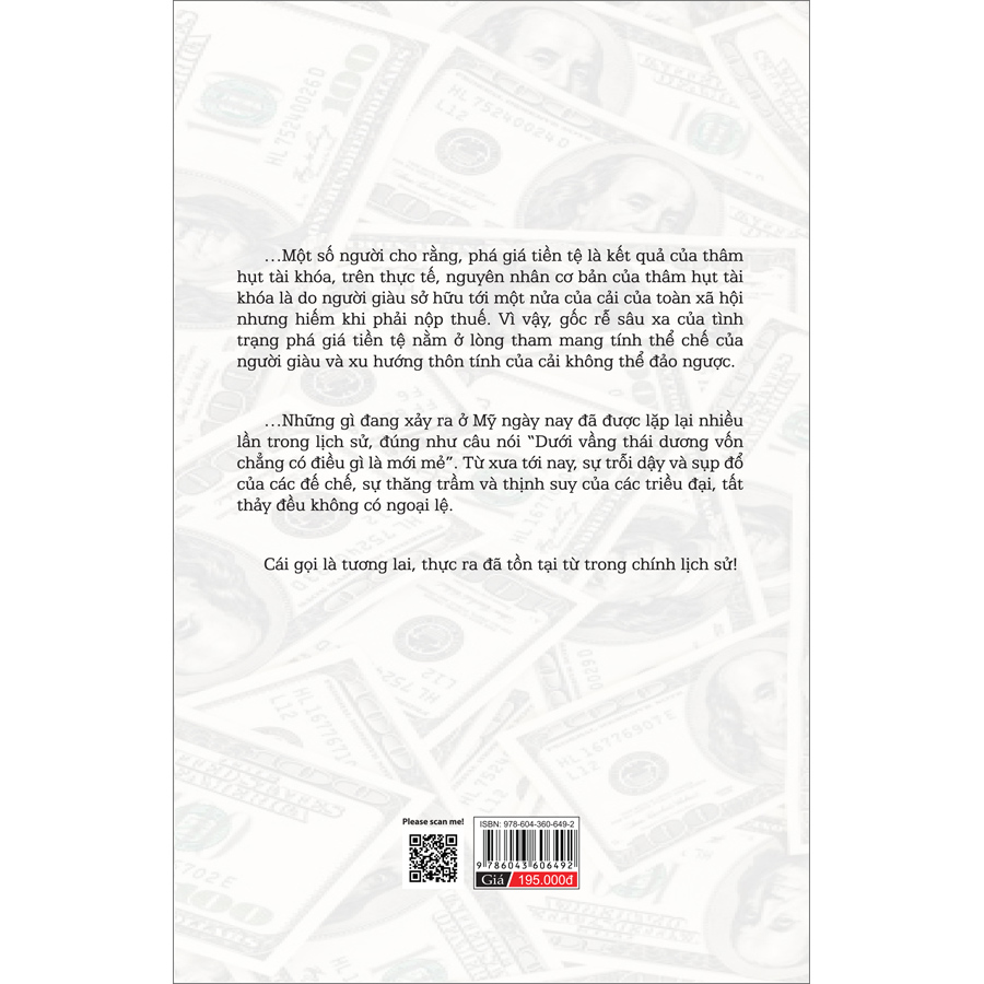 Ngoài ra, cuốn sách còn mở rộng tầm quan sát của độc giả đến giai đoạn những năm 2000, từ quan sát cận cảnh nền kinh tế Mỹ cho đến giai đoạn đánh giá và nắm bắt ngọn nguồn trong lịch sử, từ đó phục dựng lại một cách chân thực nhất mô hình của quá trình suy vong, từ đó hiểu được bản chất của tiền tệ cùng những định hướng, hướng đi trong tương lai.