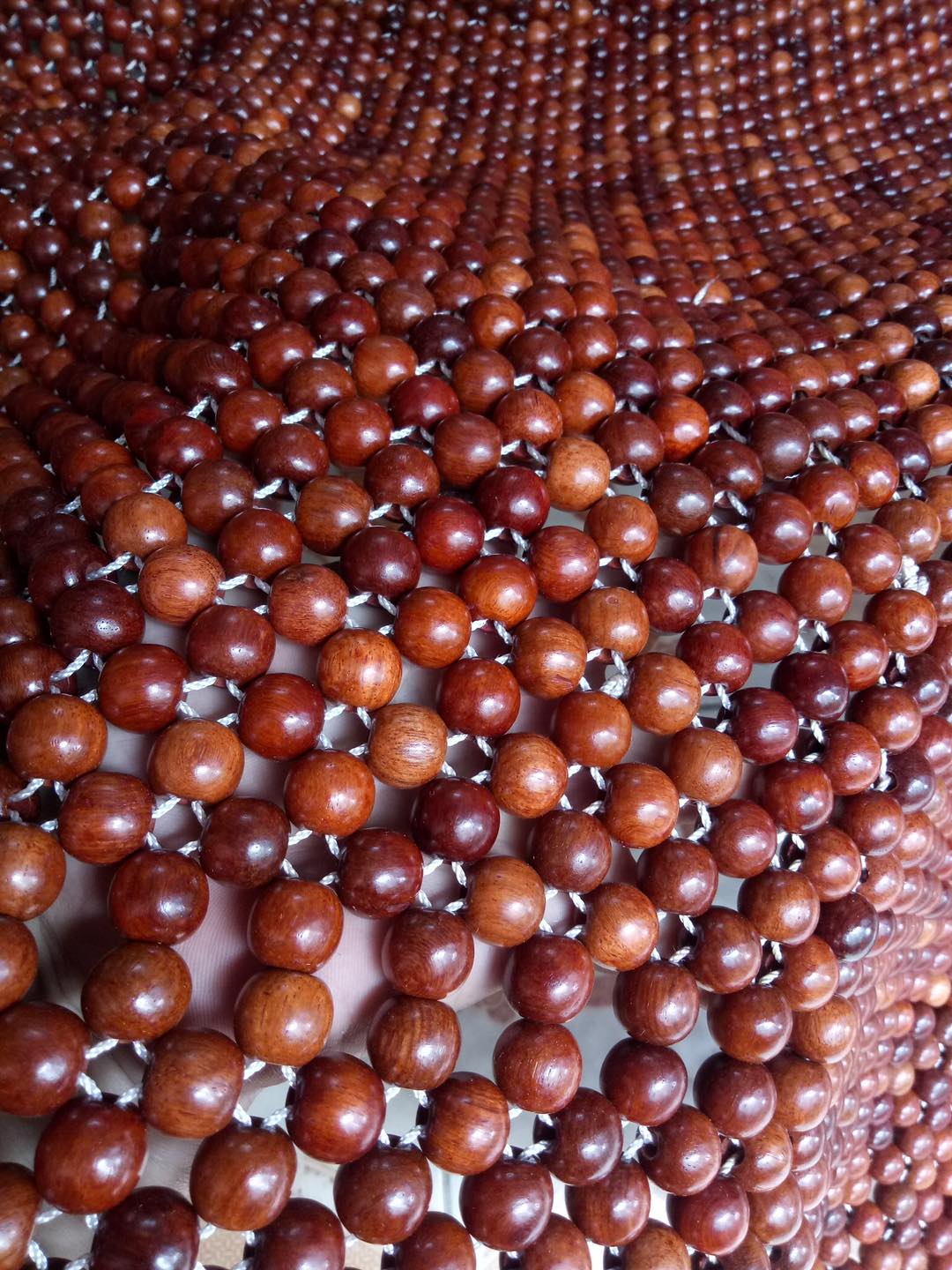CHIẾU HẠT GỖ HƯƠNG ĐỎ  CAO CẤP ( ) : - Chất liệu : 100% gỗ Hương  tự nhiên - Kích thước chiếu : 2,2mx2m - Kích thước hạt : 1,2cm ( kích thước hạt